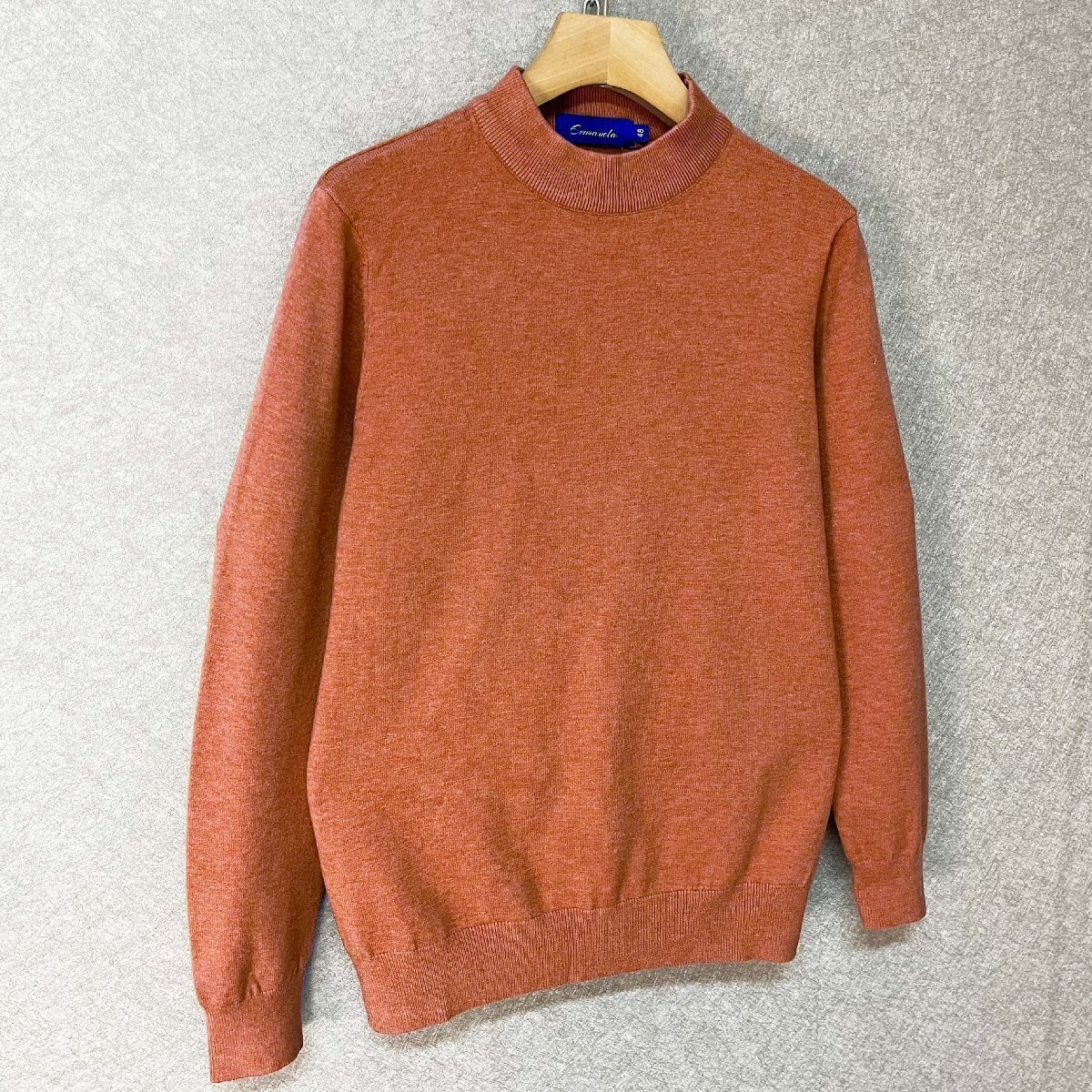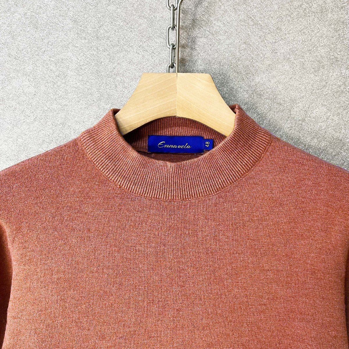 個性・セーター 定価4万◆Emmauela・イタリア・ミラノ発◆ウール混 保温 伸縮性 ニット 無地 クールネック カットソー インナー 長袖 日常 M/46サイズ