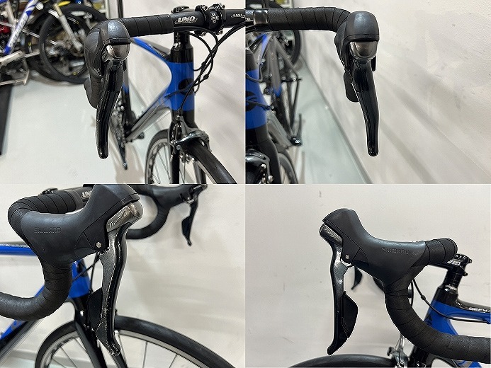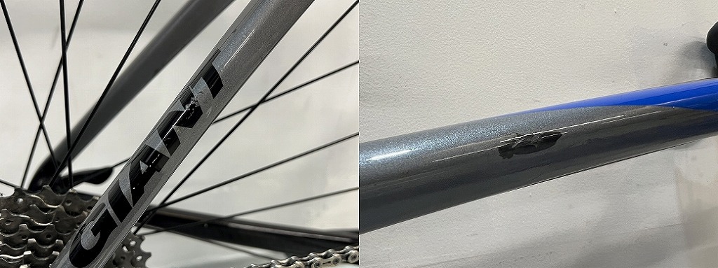 フレーム補修痕があります(トップチューブ)、シートステーにキズが見られるほか、STIレバーにもキズが見られます。2009年モデルですが、Tiagra4700に載せ替え(リアブレーキのみR7000)にアップグレードしております。
