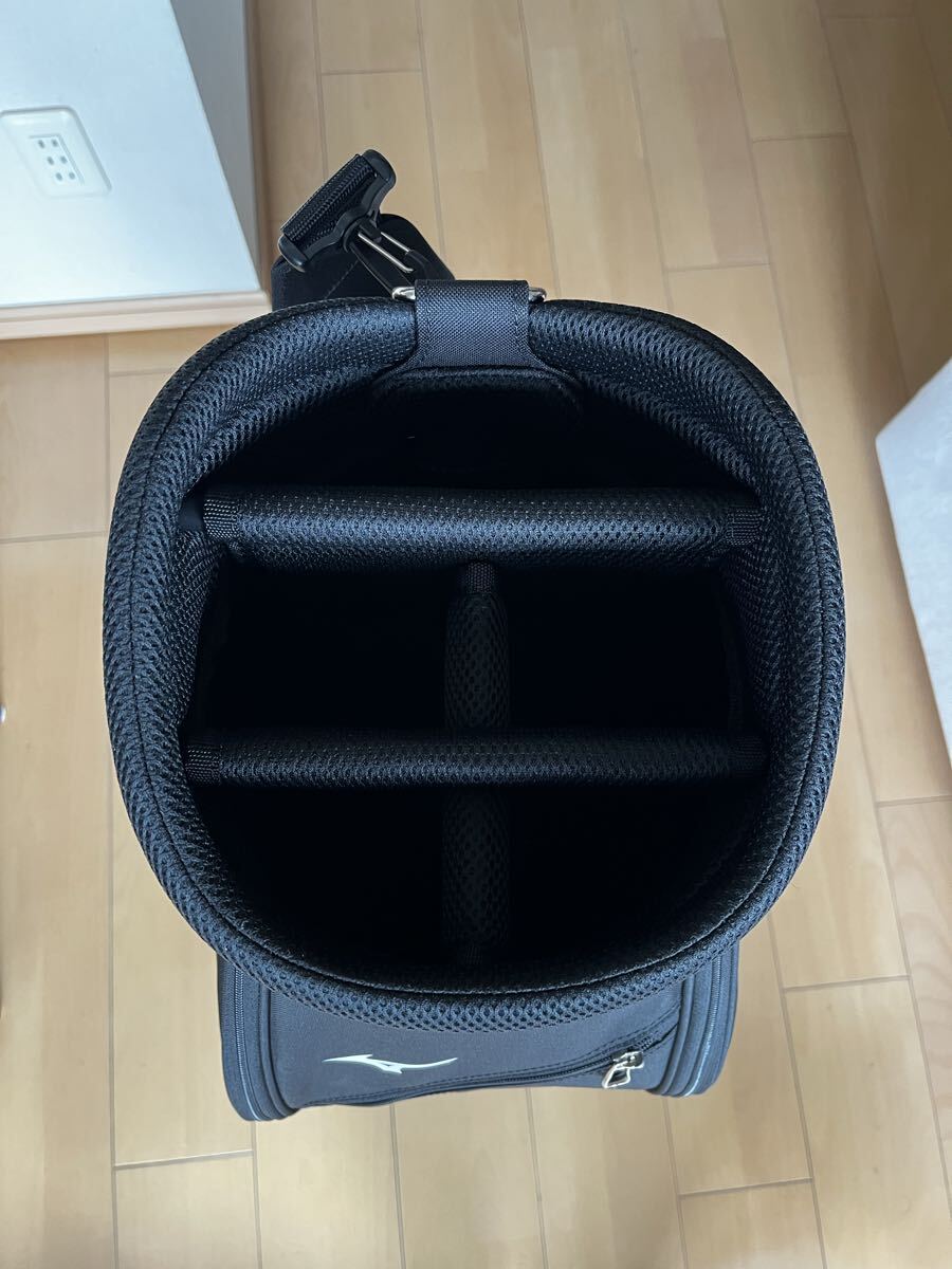 Mizunoのブラックに白が高級感漂う落ち着いた大人のとってもカッコ良いカート型キャディバックになります。