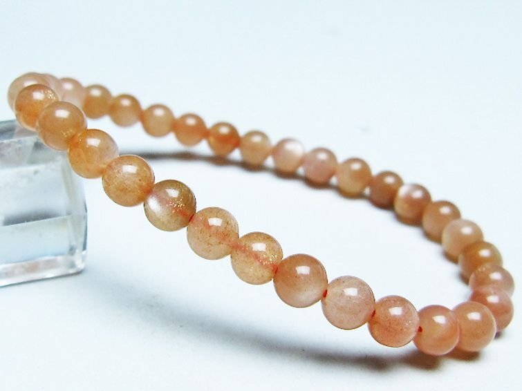 ■商品名: オレンジムーンストーンブレスレット ■商品ID: T347-5645 ■商品重量:約 9.3g ■商品サイズ:内周約:160mm(±5mm)粒直径約:6mm(±0.5mm) 【ムーンストーン(月長石)】 ムーンストーンは長石の一種で正長石(オーソクレース)を主としアルバイト(曹長石)成分を含んでいます。そのために美しいシラー効果が確認できます。乳白色や半透明のものが一般的ですが、他にも青やオレンジ等の様々な色が確認されています。柔らかい月の明かりのような光沢を持ち、真珠を思わせるような上品な石です。 ムーンストーンは古来より月の光が宿る石とされてきました。灼熱の国インドでは月は安らぎの象徴とし崇められてきましたが、その月の力を宿した聖石としてムーンストーンを身に着けていたそうです。 月の光のような柔らかな波動を持つムーンストーンは、心配や緊張を解きほぐし、心や情緒を安定させる効果があるとされていることからうつ病やノイローゼを防ぐとされています。また感受性や危機を察する直観力が高まるとされ、厄除けになることから旅人の守護石ともされています。 自分の中にある潜在能力を高め、ひらめきをもたらしてくれるとされていますのでクリエイティブな職業に携わっている方にお勧めしたい石です。 恋愛面においては「恋人たちの石」と呼ばれ、互いの絆や愛情を深めるために恋人への贈り物ともされてきました。またお目当ての異性に贈ると、恋が芽生えたり、友情が愛情に変わるとも言われています。一度終わった関係を復活させる等、別れた恋人同士を再び結びつけるという伝承もあります。遠距離恋愛の守護石としても有名です。変わらない愛情と優しい情熱を盛り上げてくれるそうですので、夫婦で持つのもお勧めです。 ■ワンポイント情報 月は女性性を象徴し、女性の身体の調子も月の満ち欠けに関わっているという説は有名です。ムーンストーンは女性特有の身体の不調や更年期等のイライラを鎮めてくれるとされています。また生理痛、不妊、出産の痛みを改善し、安産のお守りともされています。 暗い夜道を照らす月の光のように、闇の悪霊を祓い、危険を察知する感が良くなるとされていますので、夜道を歩いて帰宅する女性はお守りとして一つ持つと良いかもしれません。 |
