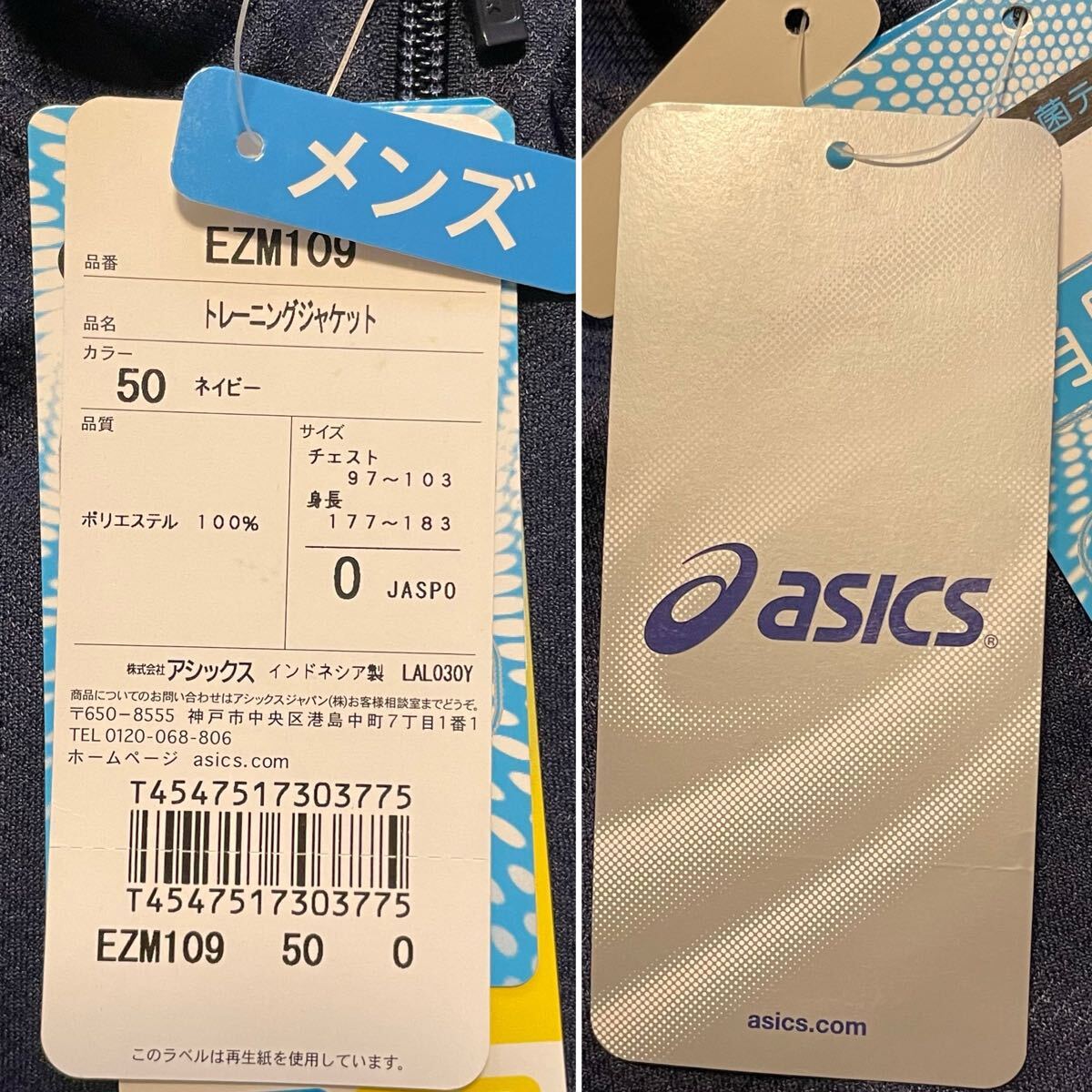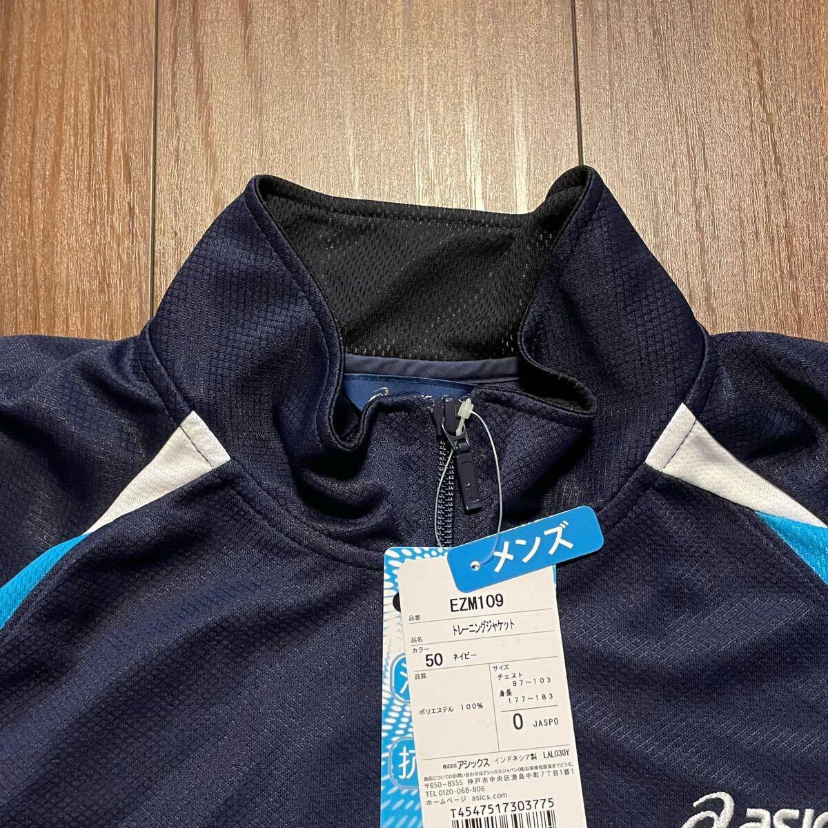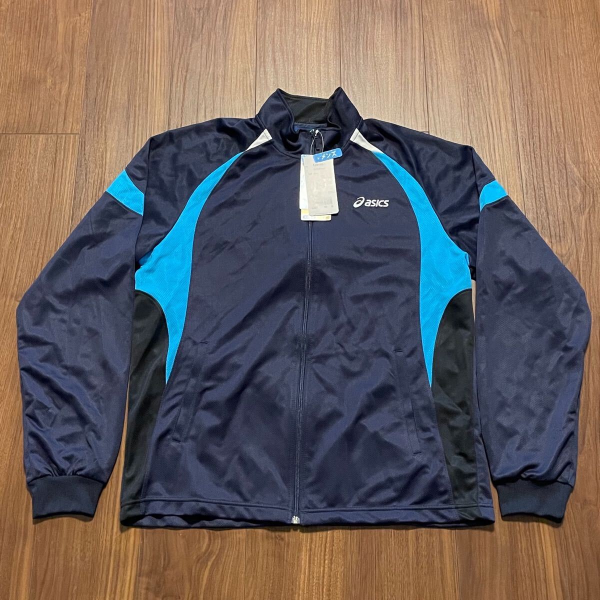 ☆未使用☆asics アシックス☆メンズ☆トレーニングジャケット☆長袖☆ジャージ☆サイズO☆ポリエステル100%☆ネイビー☆刺繍☆