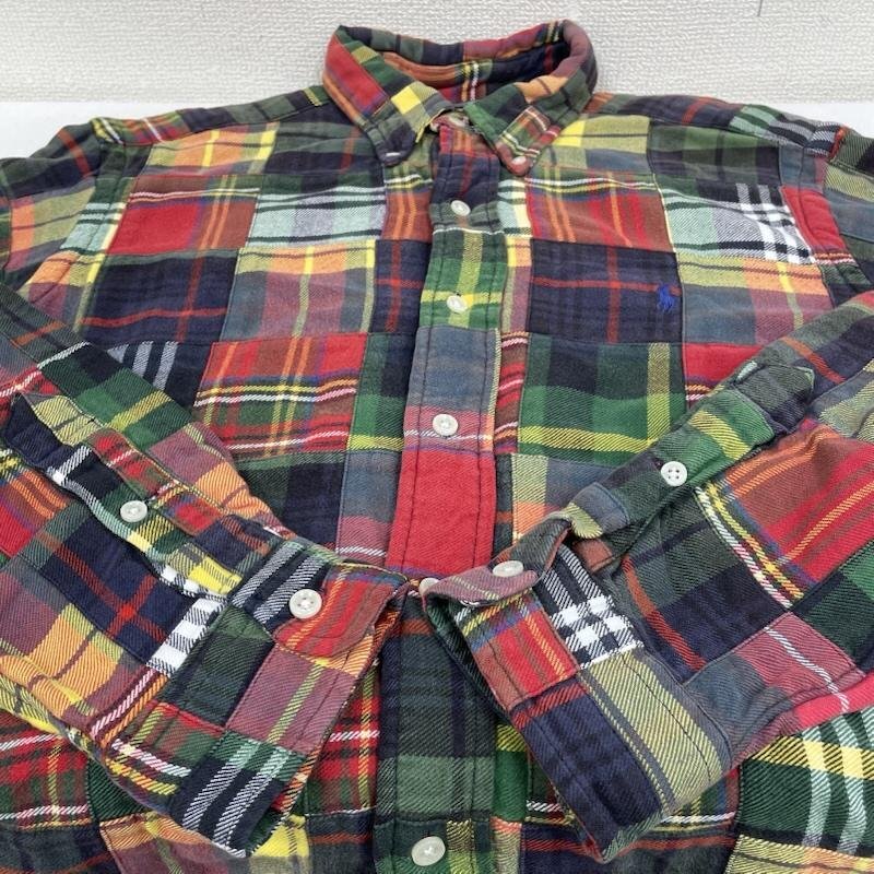 ラルフローレン CLASSIC FIT 長袖 ボタンダウン パッチワーク ネルシャツ ブラウス マルチカラー チェック M