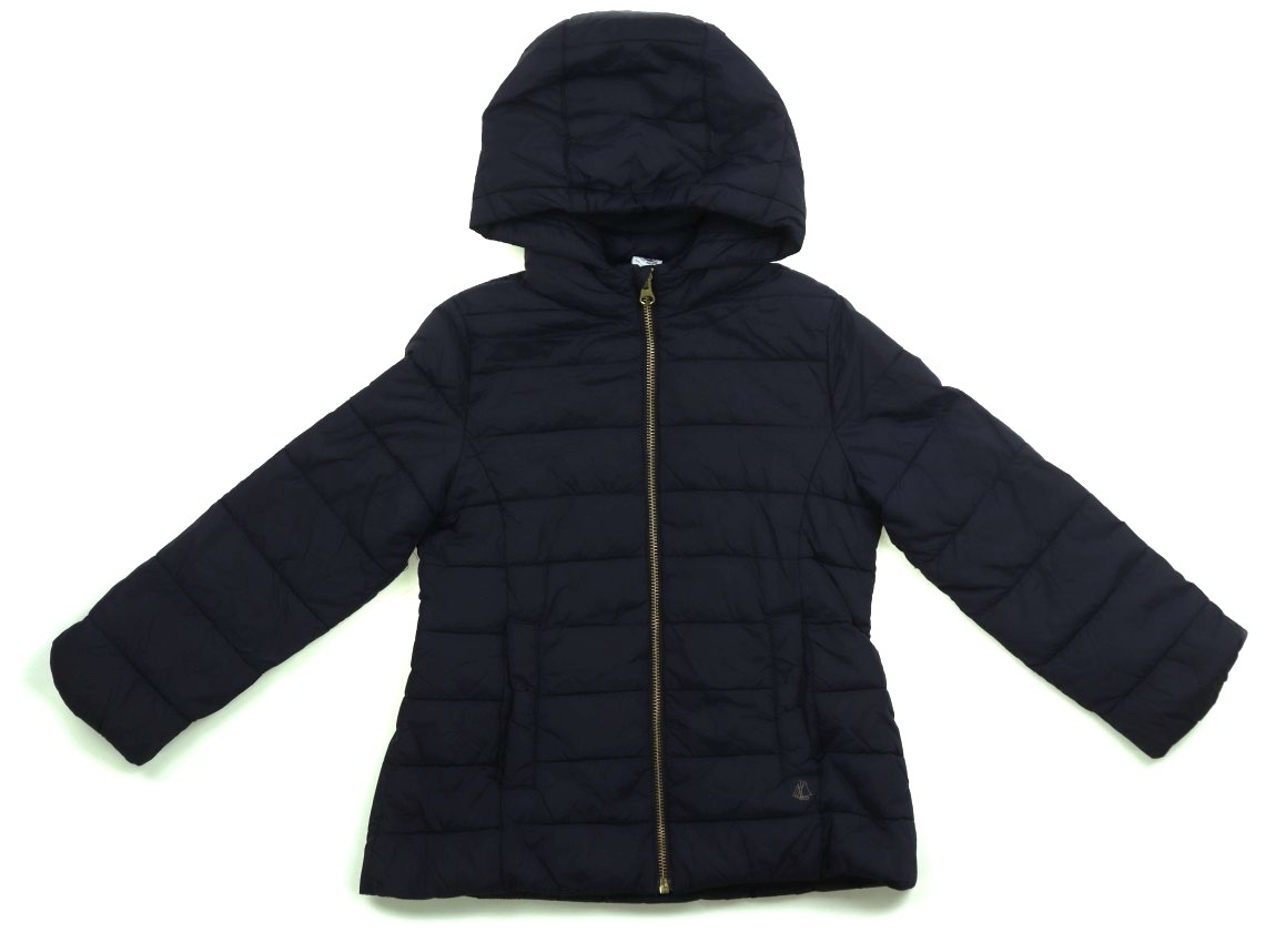 ナイロン素材。中綿入り。裏地はフリース素材。フードは縫い付けです。実際のサイズ表記は、6ans/116cm。薄い汚れや糸の飛びだしがいくつか見られます。