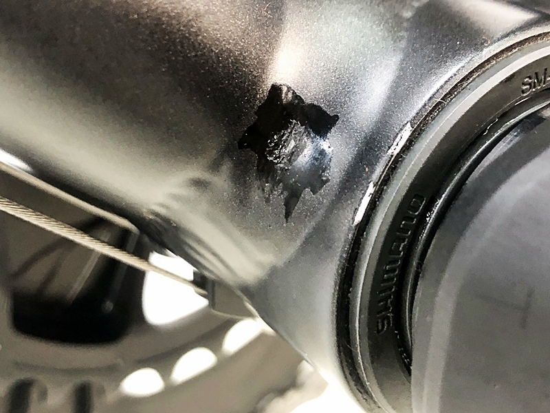 フレーム、その他外観:BBノンドライブサイドにタッチアップ跡があります。トップチューブとヘッドチューブ付根辺り、左チェーンステー、ホイール、シートポストにキズがあります。
