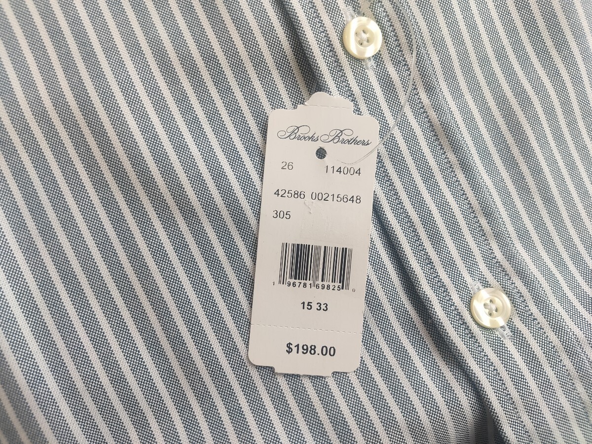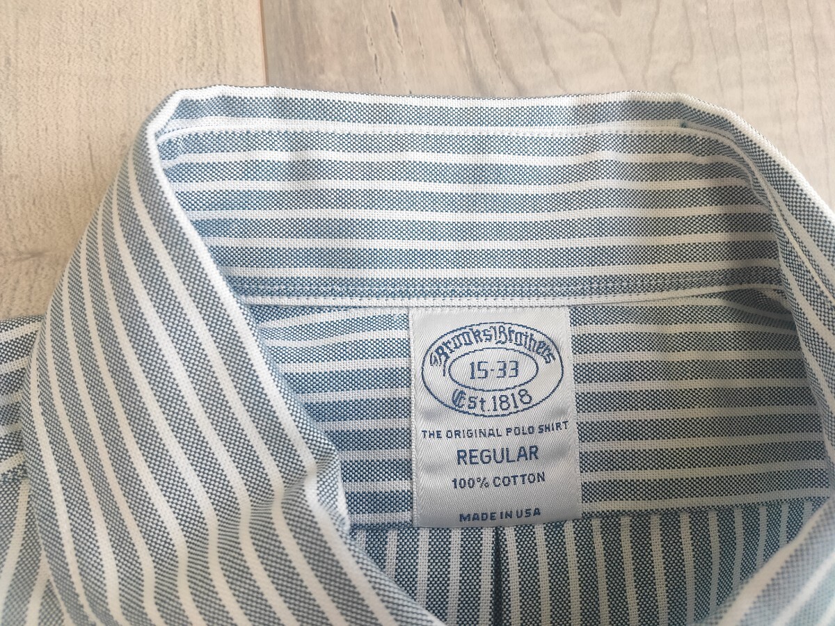 BROOKS BROTHERSのストライプボタンダウンシャツです。色は緑×白、素材は100% COTTONのオックスフォード地です。アメリカ製です。近年のモデルです。