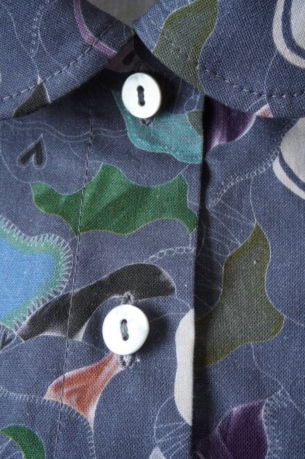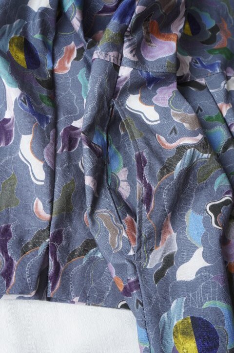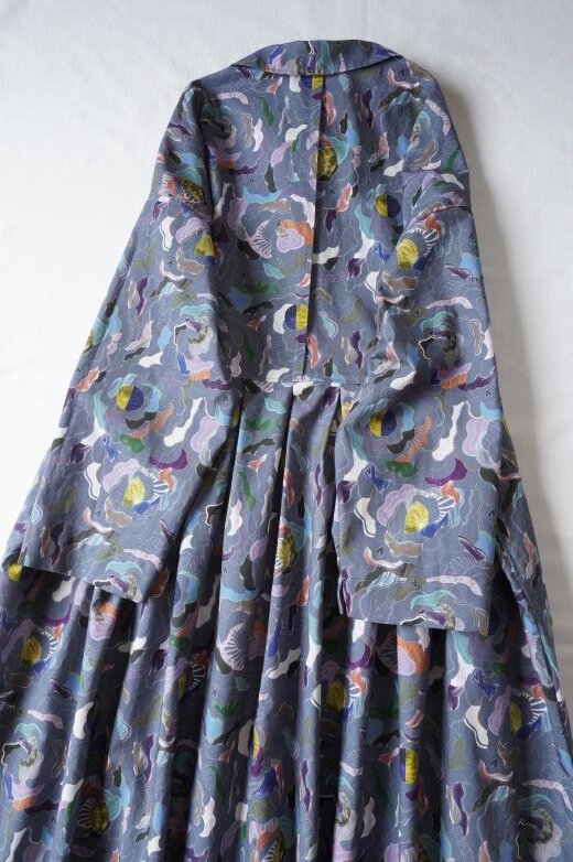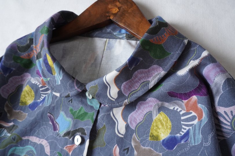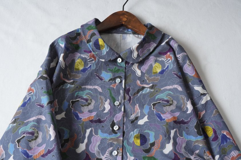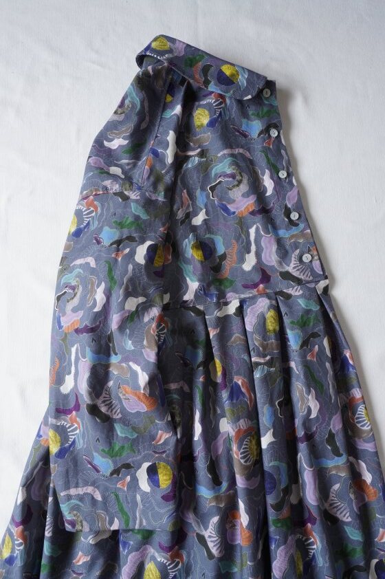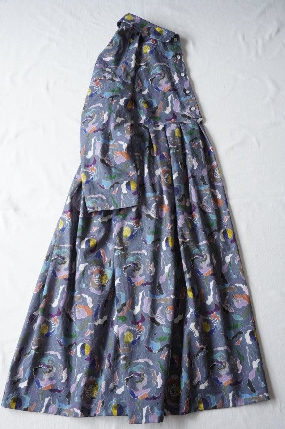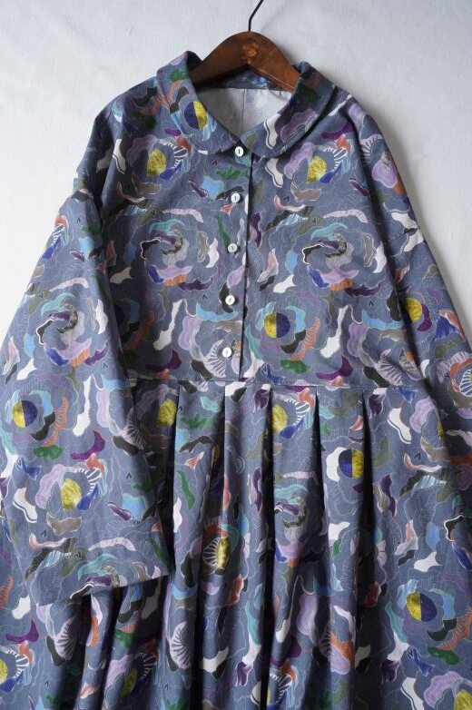 ハンドメイド♪「nora」さんcotton♪グレー色地に抽象画風柄♪襟付きOP♪