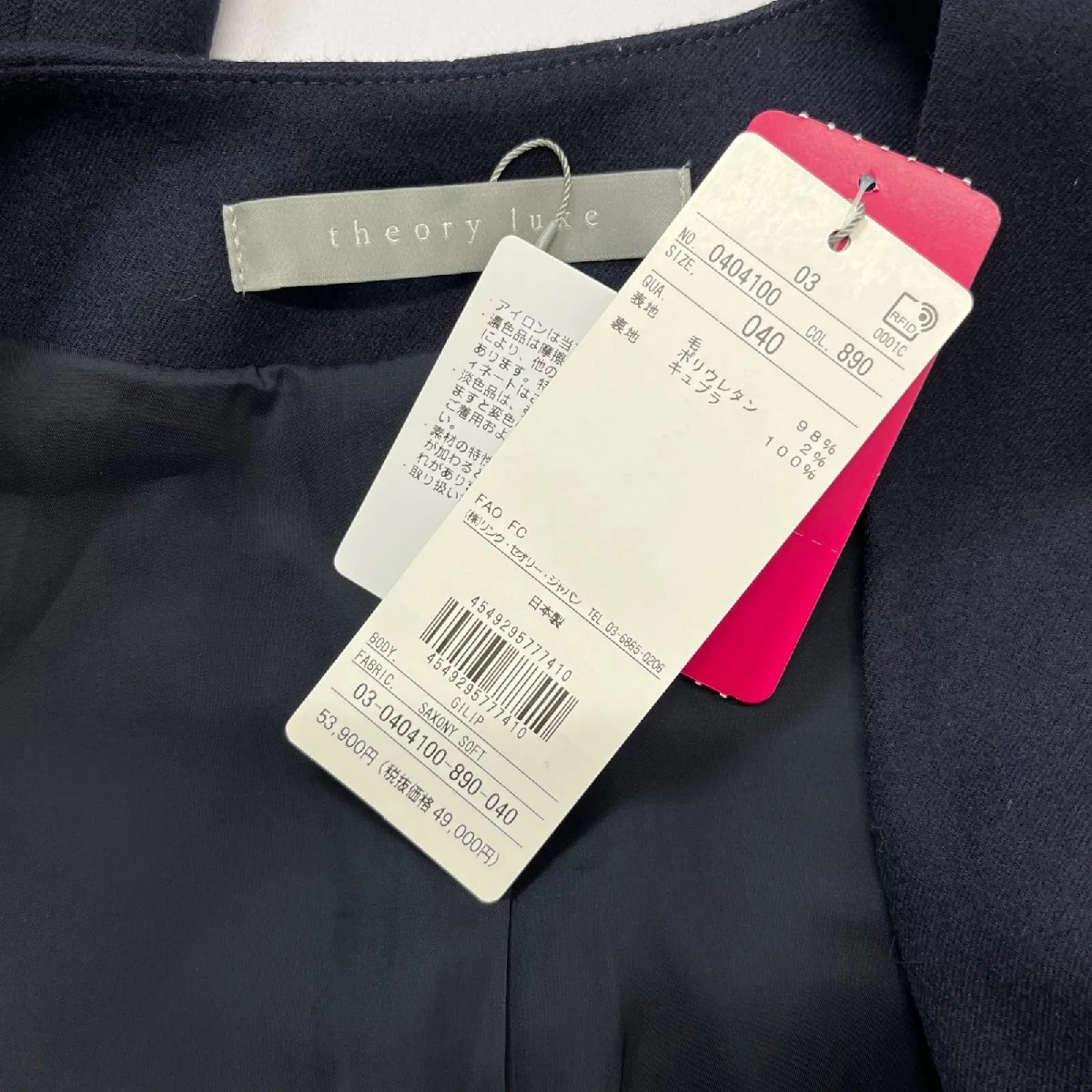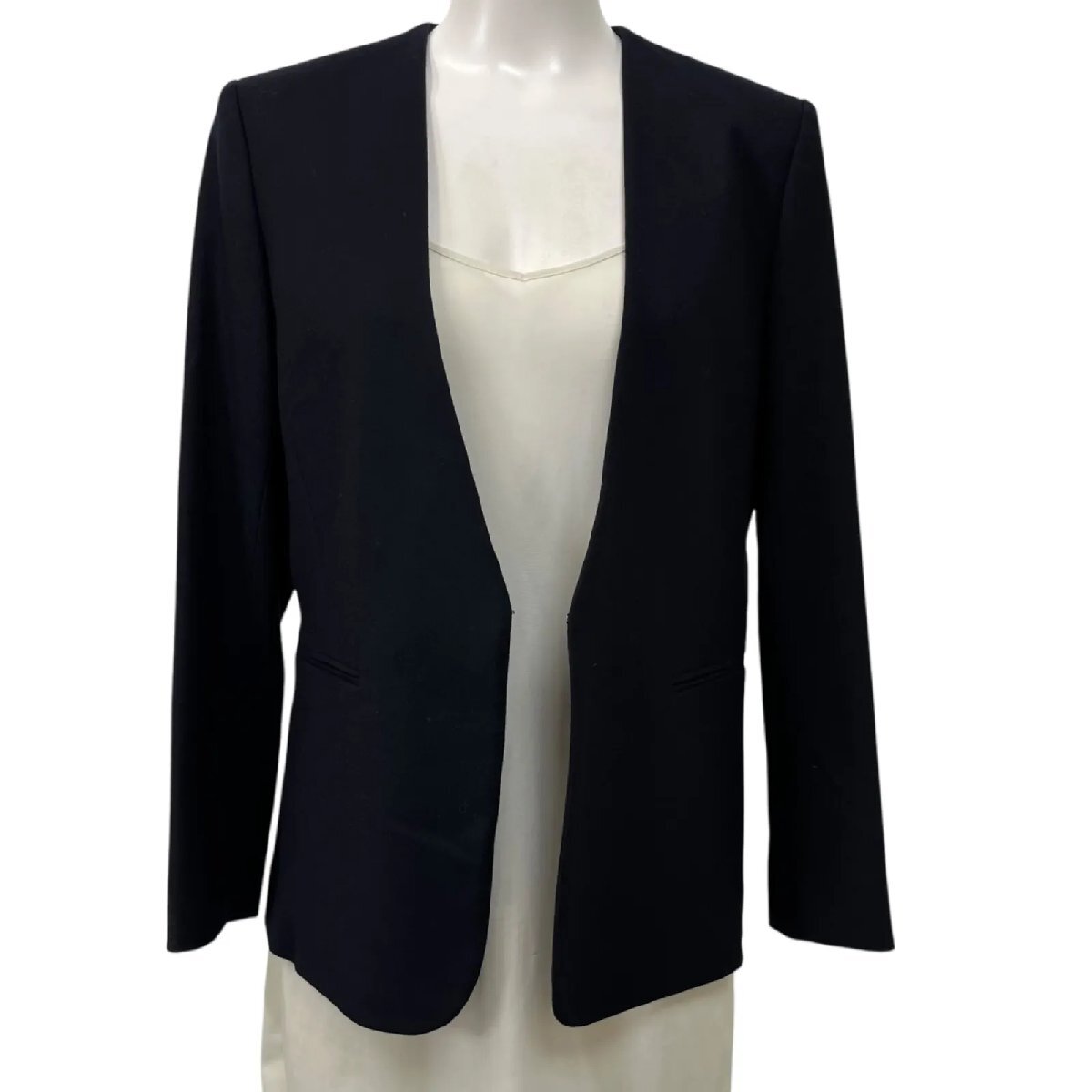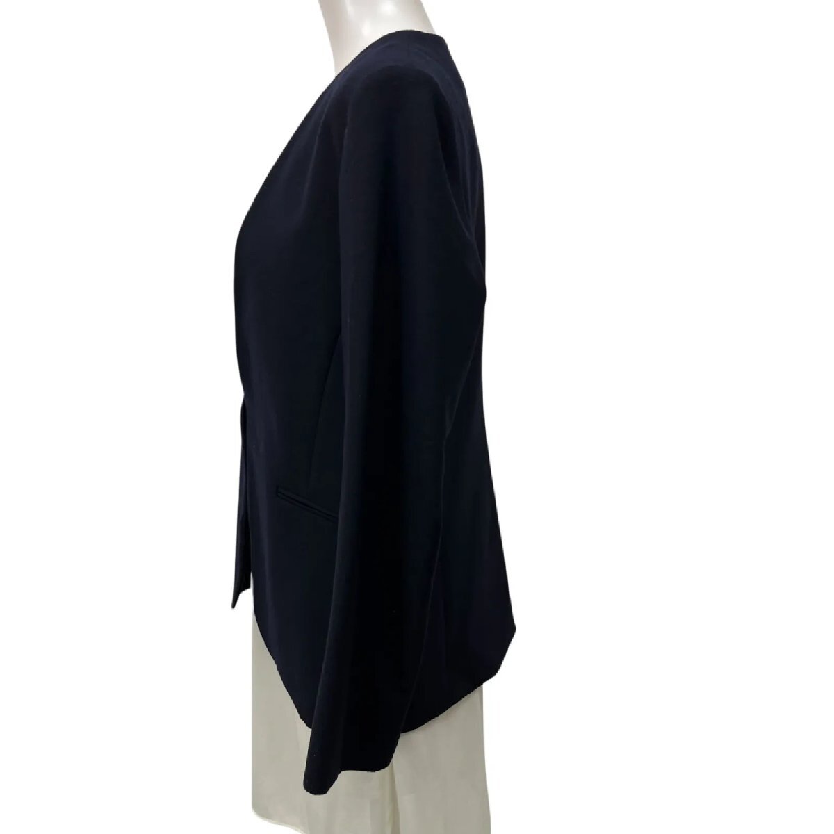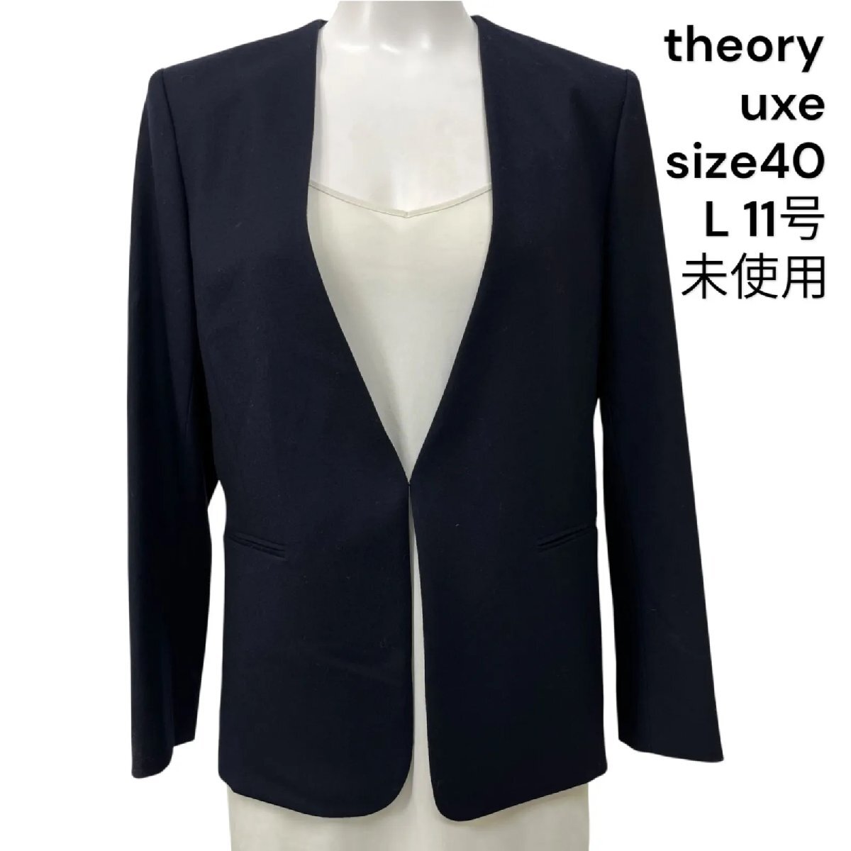 未使用 theory luxe セオリーリュクス ノーカラージャケット 長袖 ウール ネイビー サイズ40 L 11号 レディース S5U362