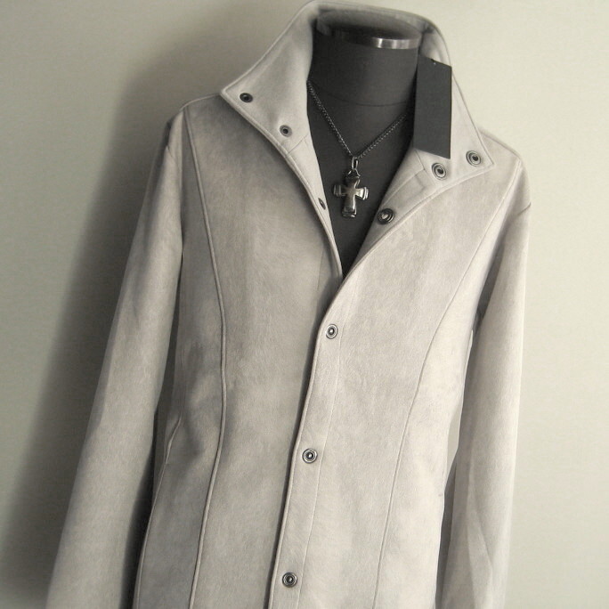■マイクロ起毛のダンボールニット素材を使用したスタンドカラーカーディガン