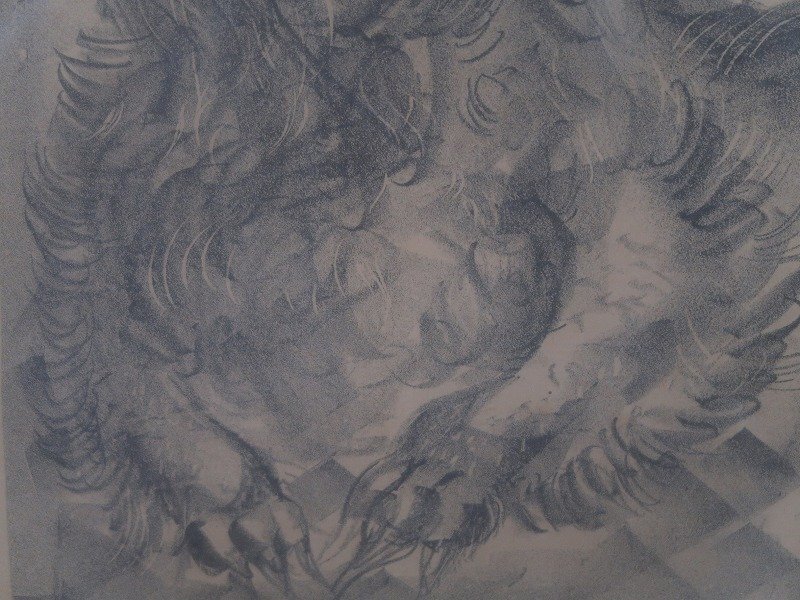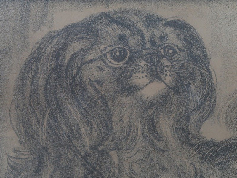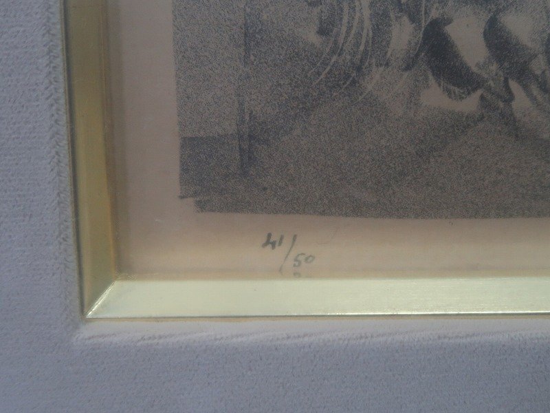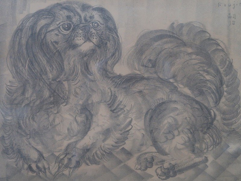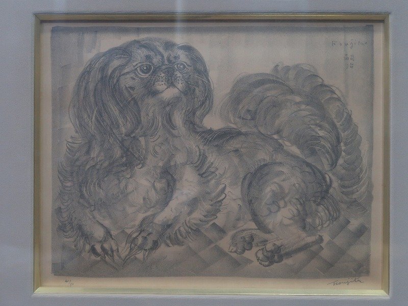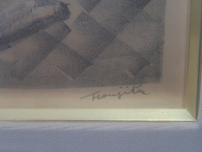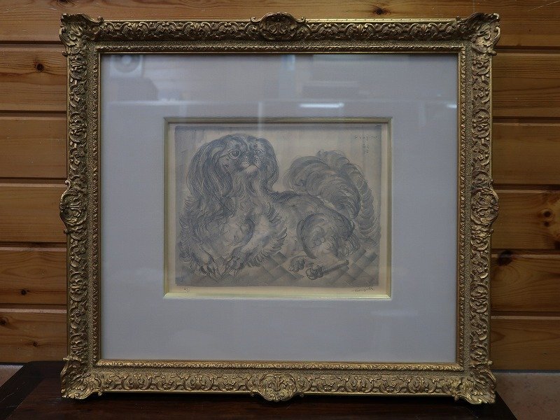 【青宝】092953藤田嗣治「猫」版画 41/50 直筆サイン 額装(4154789/342)