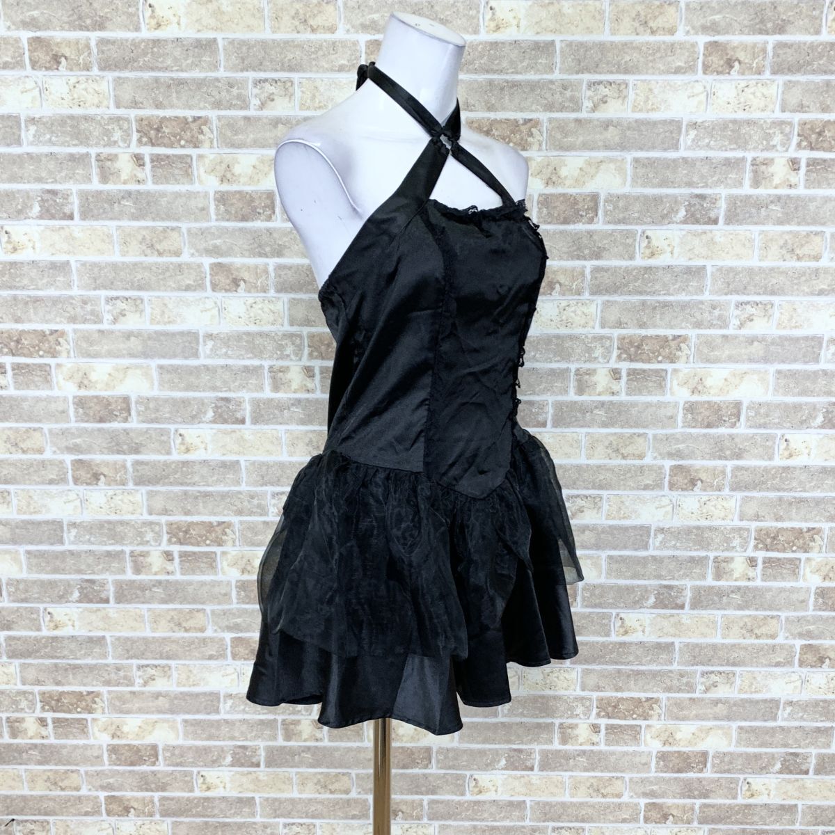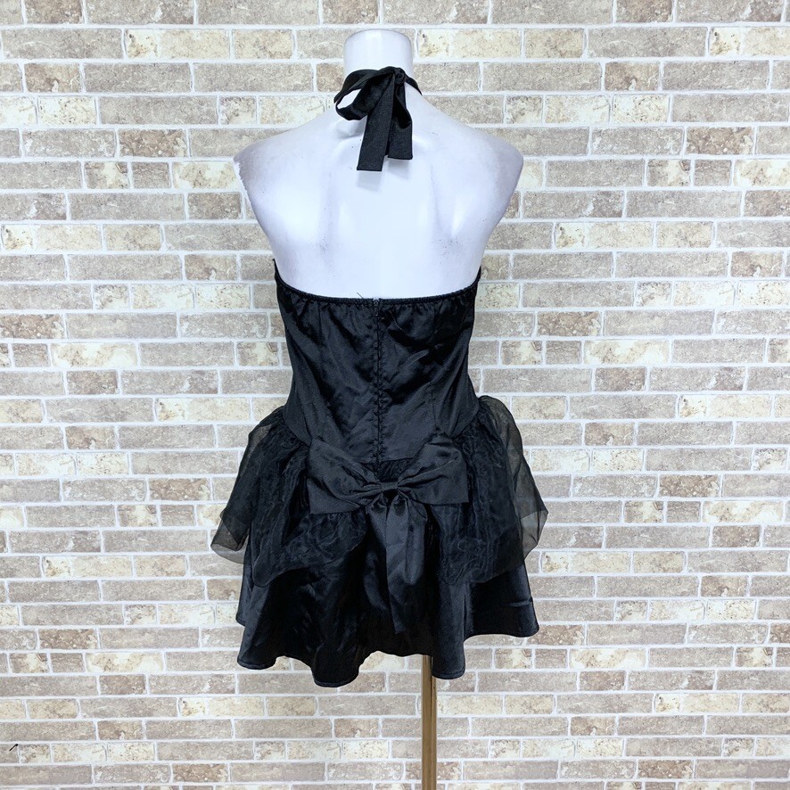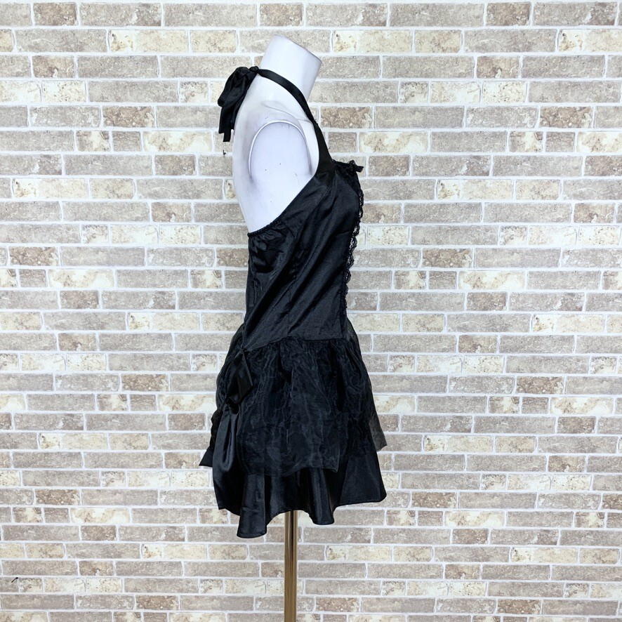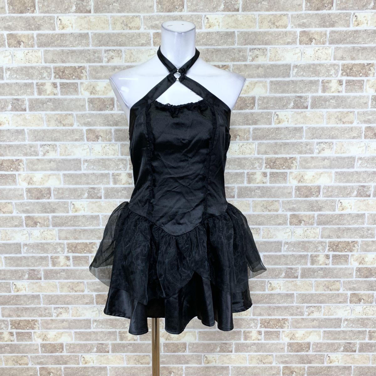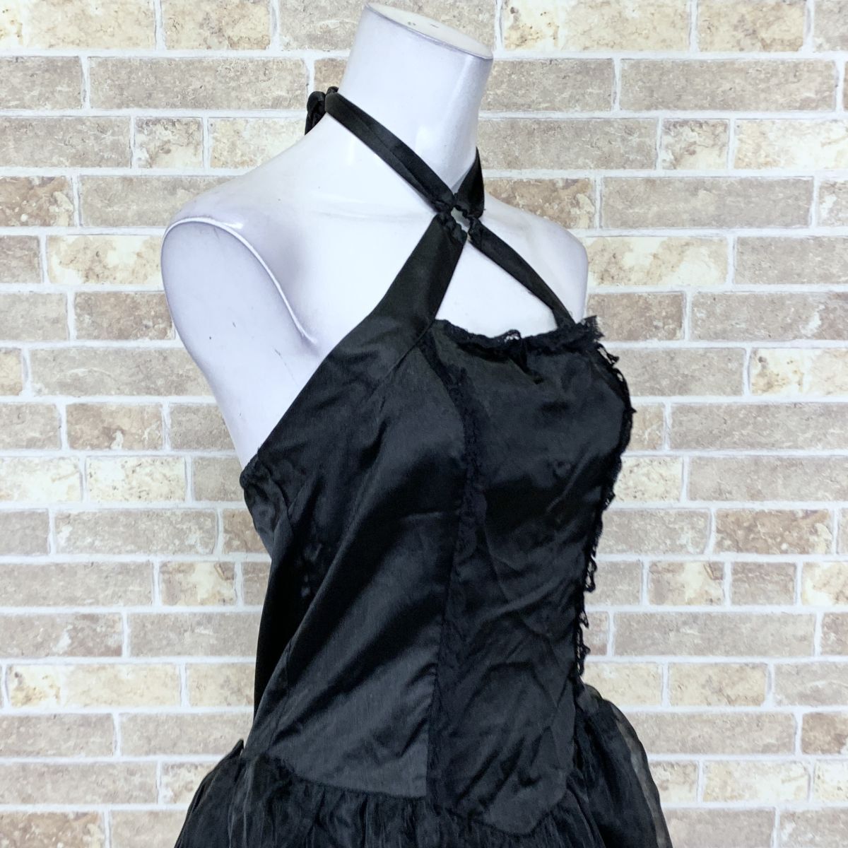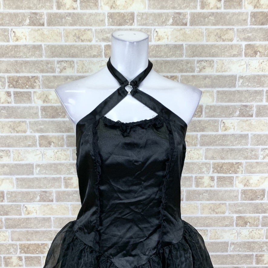 1円 ドレス NEW YORK WISH ホルターネックドレス 黒系光沢 コスプレ カラードレス キャバドレ 発表会  中古14769