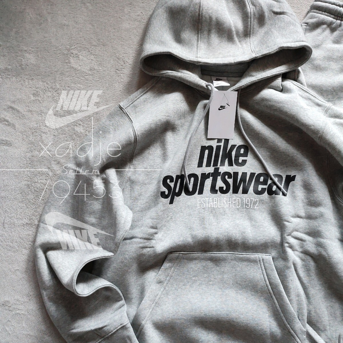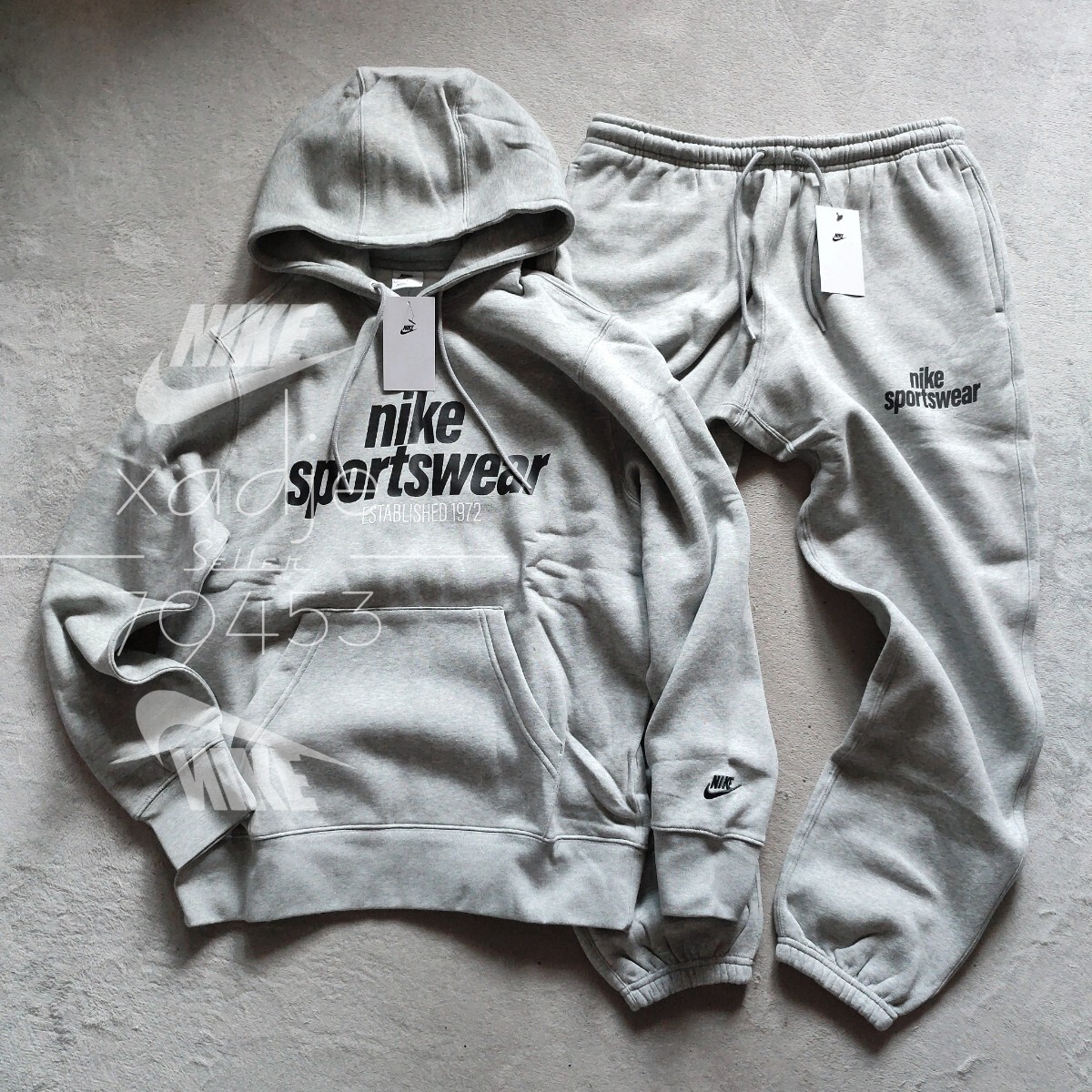 新品 正規品 NIKE SPORTS WEAR ナイキ ロゴ プリント 刺繍 上下セット スウェット パーカー パンツ セットアップ 灰 グレー 定価19800円 L
