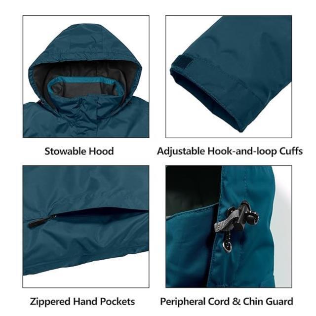 1)周辺コード付きのフードは調節可能でフレンドリー。使用しないときは襟に丸めて入れることができます。