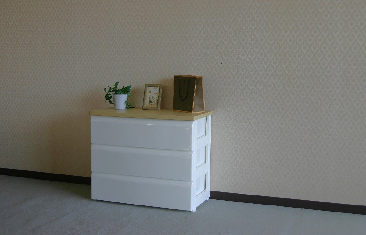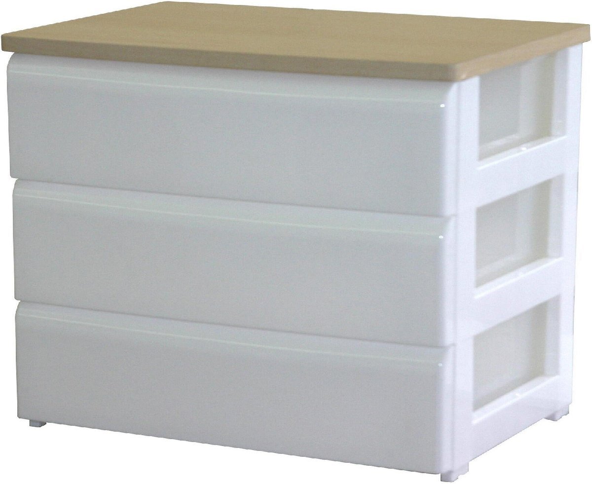 即決可@新品[日本製収納ケースプラスチック]木天板付き収納家具ワイドチェスト3段TW743 引き出し式収納ケース | ||||||||||||