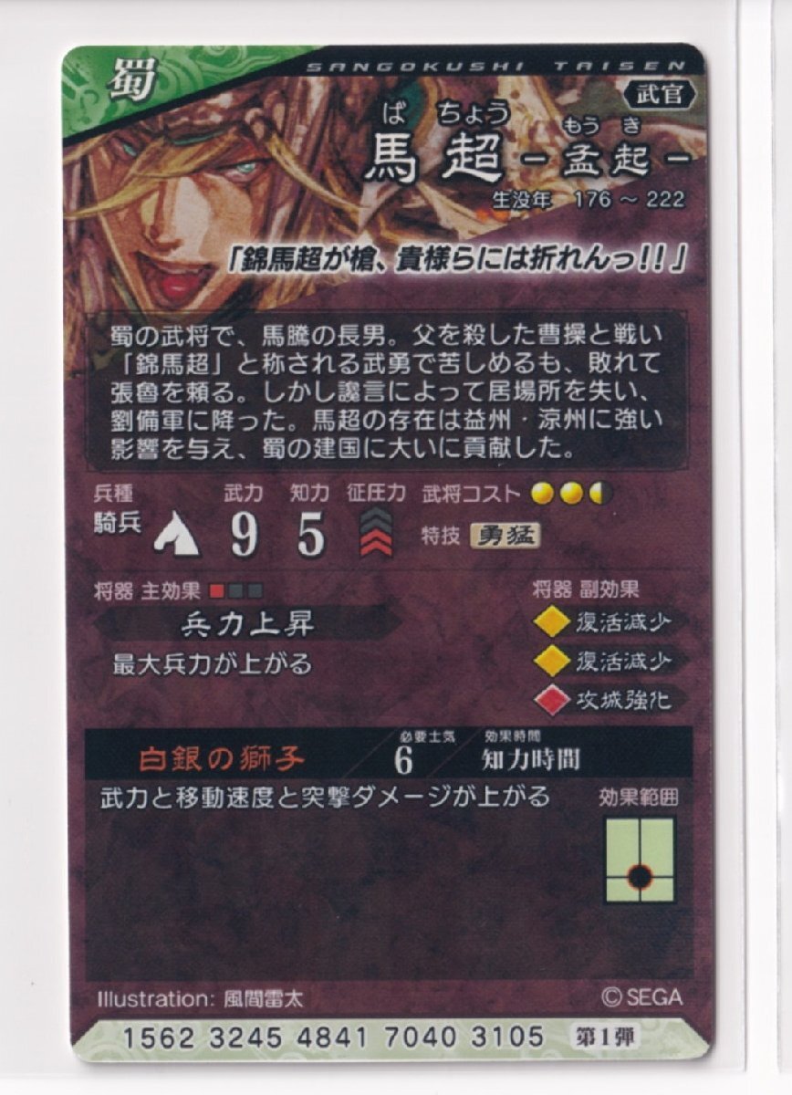 三国志大戦4 旧枠 蜀 1弾 SR 馬超 白銀の獅子 兵力上昇 コレクション用 【3子09】