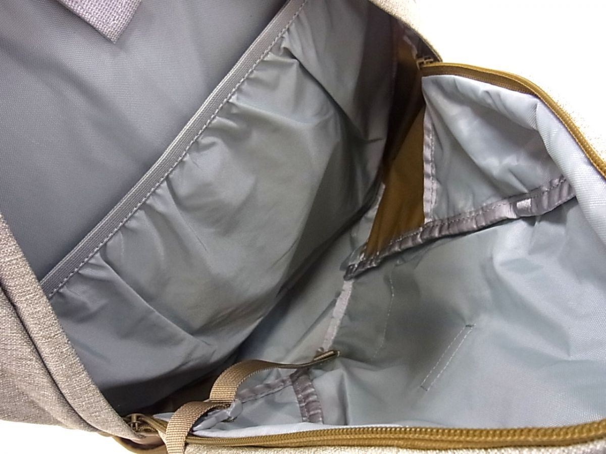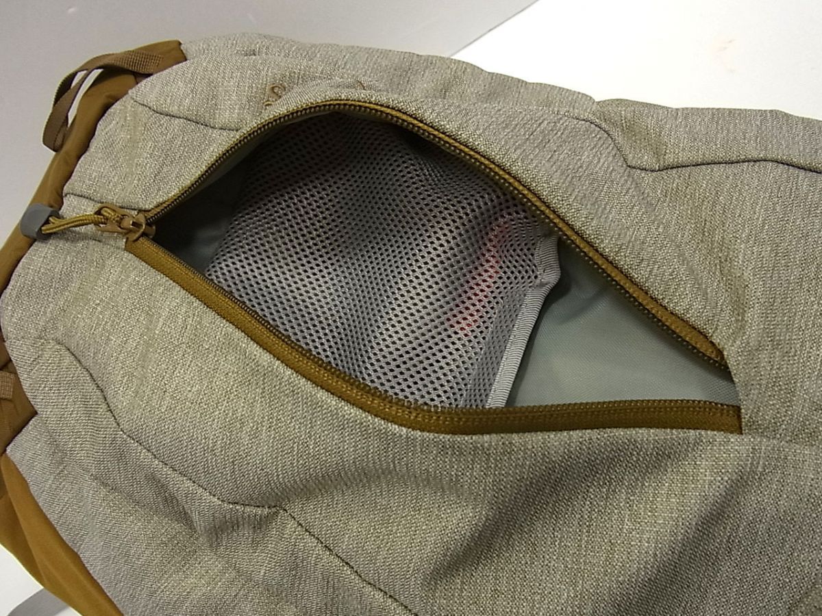 メイン収納は容量がしっかりあり、フロントには縦型ジップポケットを配置。両サイドにはボトルや折り畳み傘の収納に便利なポケット付きです。