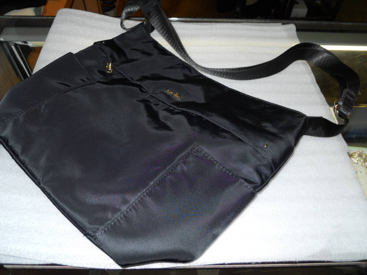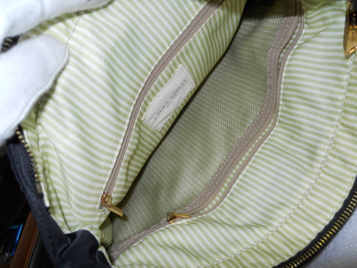 LAURA ASHLEYのショルダーバッグです。 大きさが、 W33cm H27cm D11cmです。 素材が、 ナイロン製で、色が 黒です。 上部は、 ファスナーで閉じれます。 外側に、 オープンポケットがございます。 内側に、 ファスナーポケットがございます。 状態は、 綺麗な商品です。 |