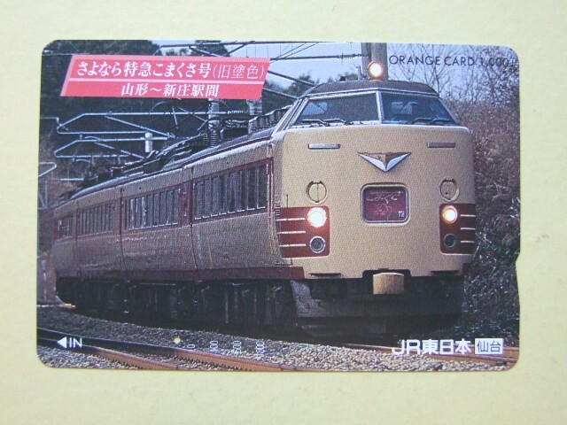 ◇オレンジカード 使用済 1穴券◇JR東日本 仙台『さよなら特急こまくさ号(旧塗色) 山形ー新庄駅間』USED品 009902
