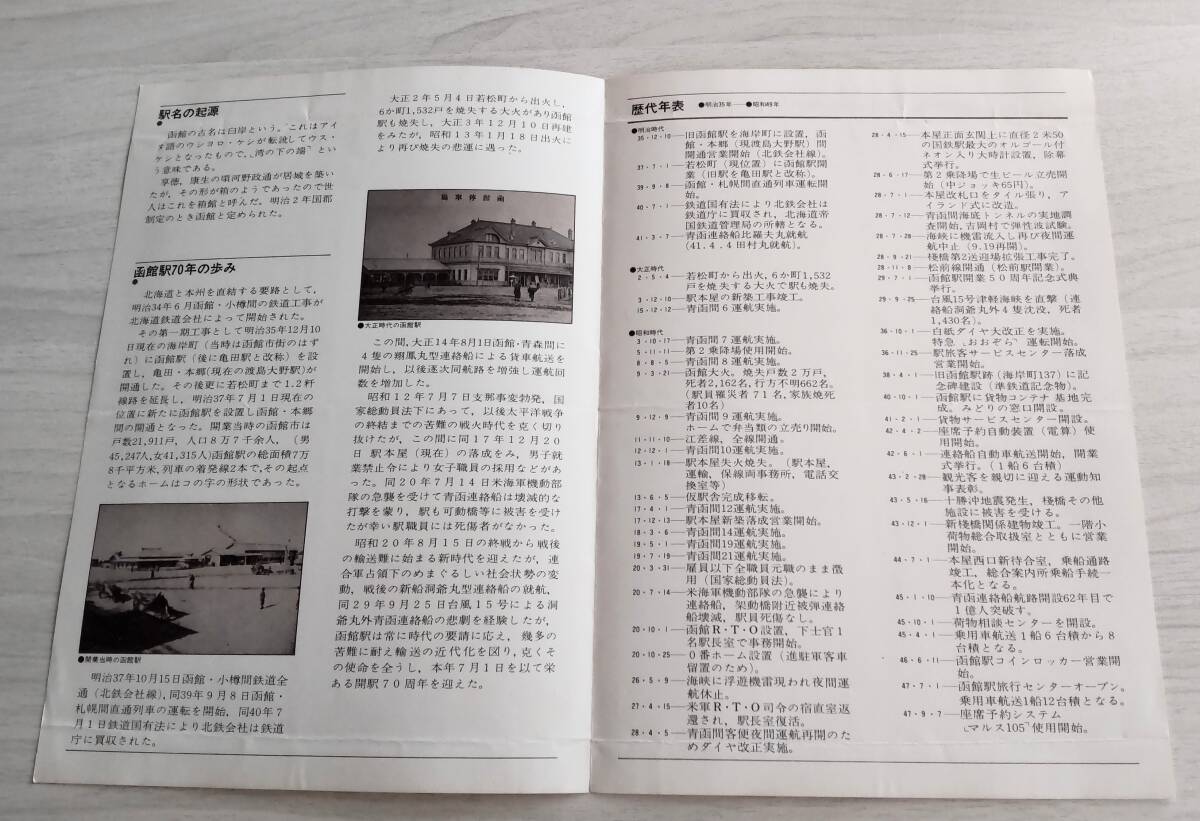 駅名の起源、函館駅70年の歩み、歴代年表、函館駅の現状など写真と合わせて掲載しています。