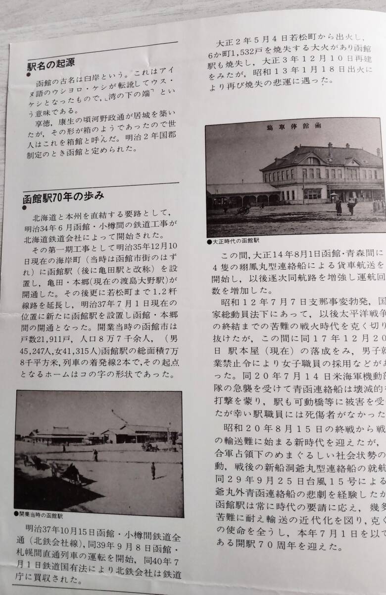 国鉄「函館駅70年のあゆみ」-函館駅開業70周年記念パンフレット★昭和49年7月1日★青函船舶鉄道管理局 発行★駅名の起源★昔の駅舎写真