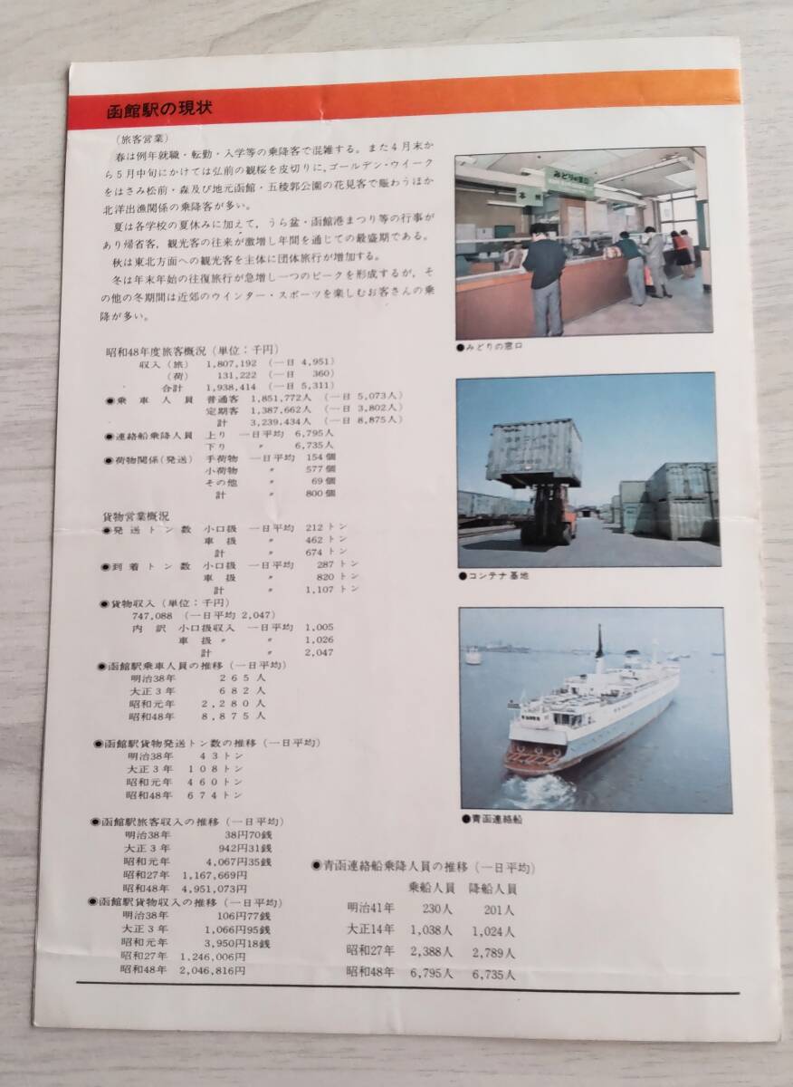 かつての懐かしい四代目駅舎と青函連絡船の写真が表紙になっている昭和レトロなパンフレットです。