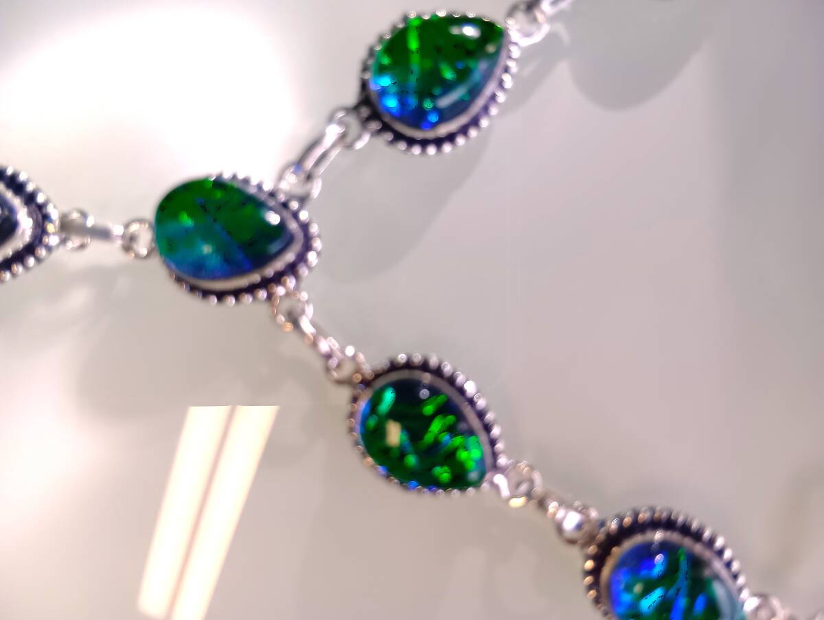 オパール ネックレス すぐにお届けできます。ブルートリプレットオパールジェムストーン925シルバーハンドメイドジュエリー