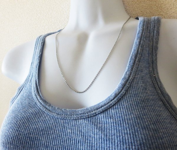 1.9mm幅40cm 短め ステンレス平小豆チェーン アズキネックレス 細めレディース
