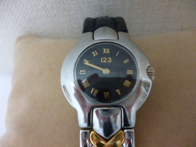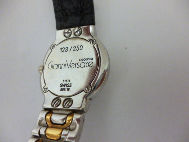 ★Gianni Versace ジャンニ ヴェルサーチ 123/250 黒文字盤 クオーツ レディース 腕時計 90116 ベルト切れ ジャンク品