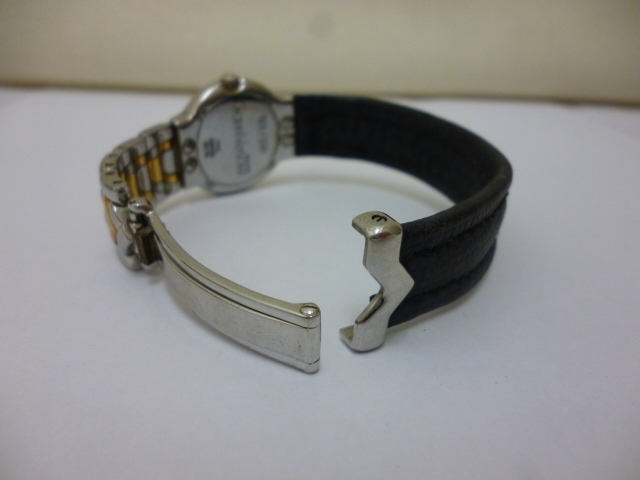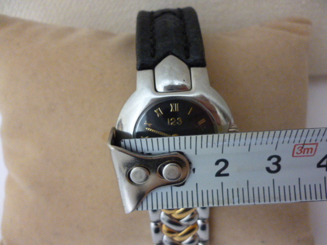 【M43965】Gianni Versace ジャンニ ヴェルサーチ 123/250 黒文字盤 クオーツ レディース 腕時計 90116 ベルト切れ ジャンク品