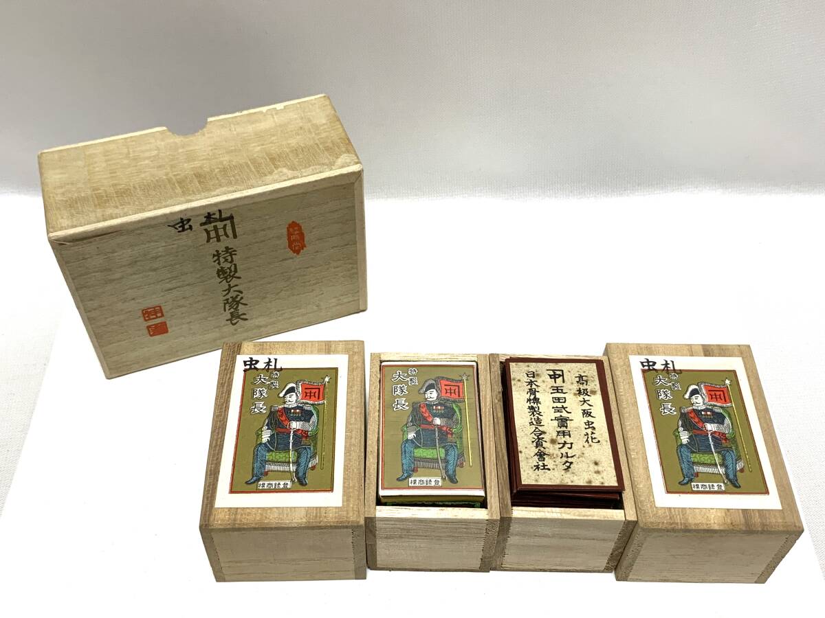 ◆278 蔵出し 特選 大隊長「虫札」 証紙付 花札 古い 歴史 時代 蔵出し 希少 日本骨牌製造合資会社 八八花 黒赤セット 桐箱入 開封/未開封