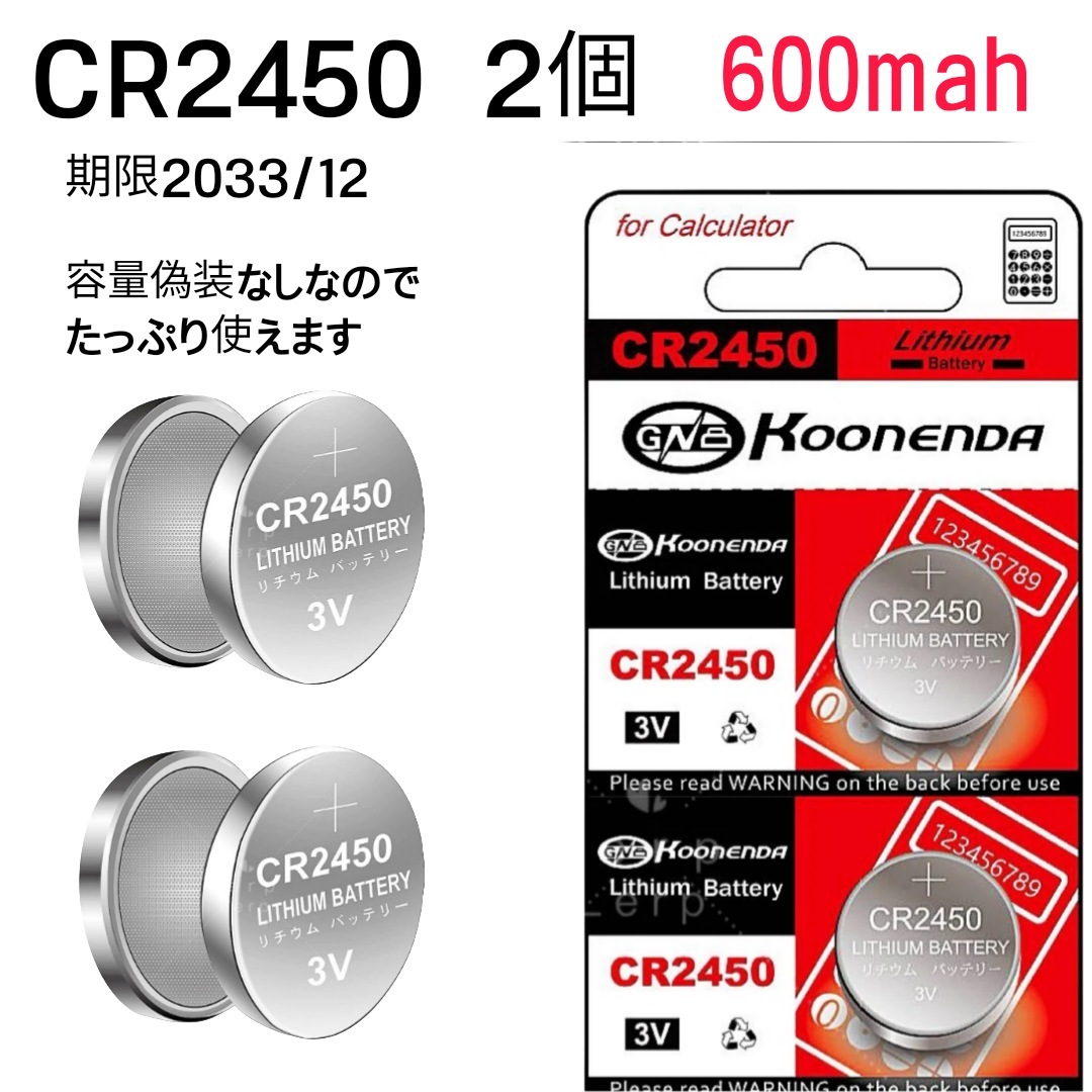 2個 CR2450 リチウム コイン電池 (3V600mah) 消費期限2033/12月 リチウムマンガンボタン電池