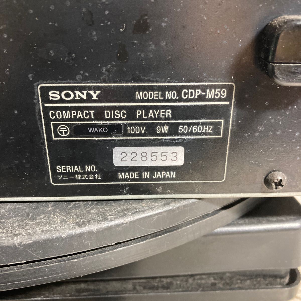MYM10-63 激安 SONY COMPACT DISC PLAYER CDP-M59 通電、電源オン、オフOK 中古現状品 ※3回再出品で処分
