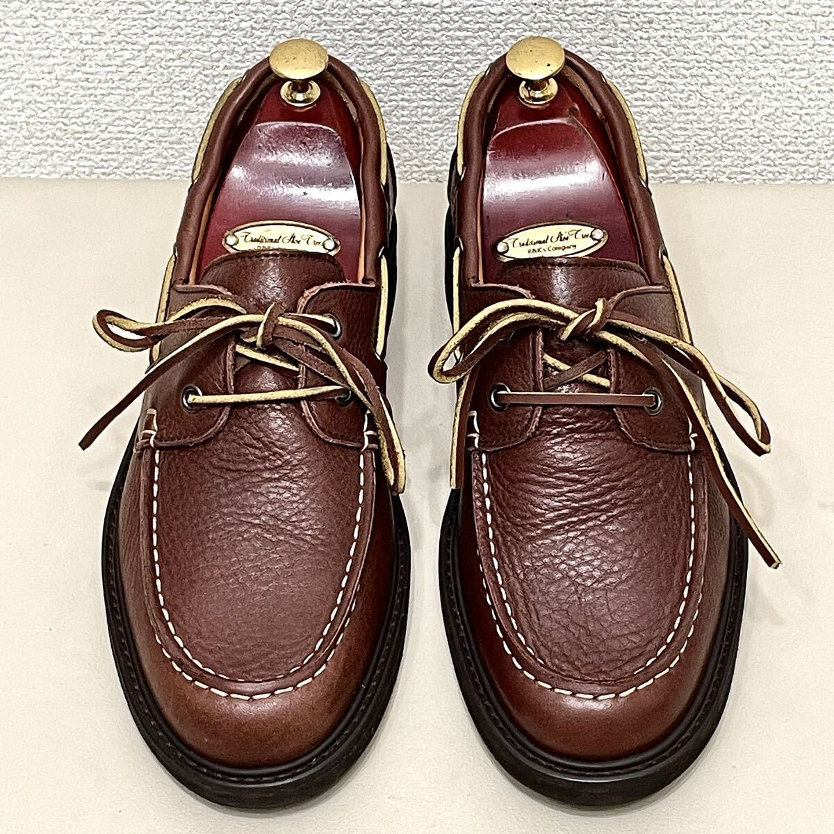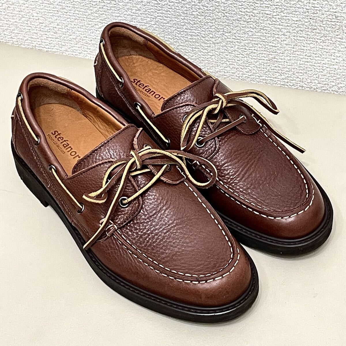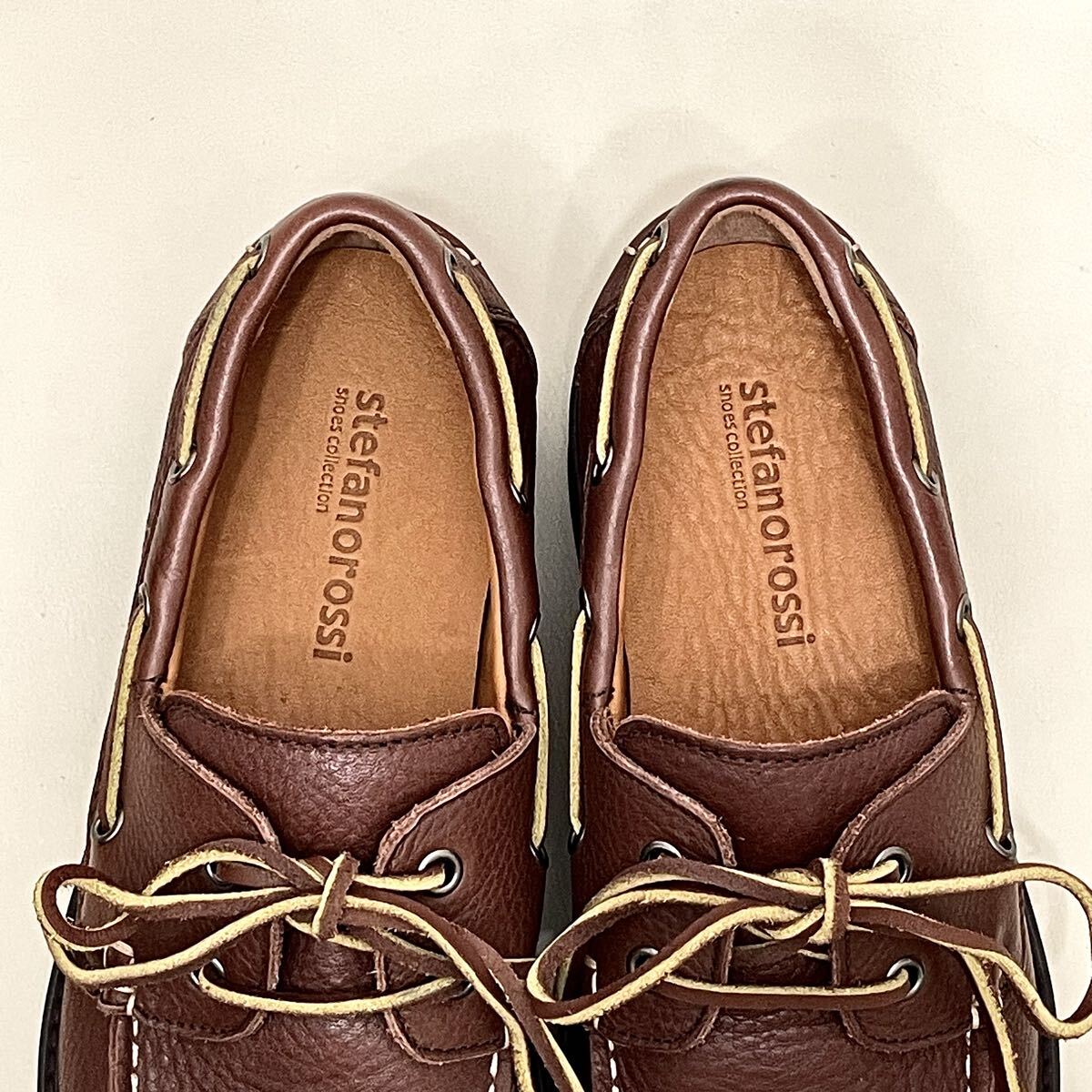 ビジネスカジュアルからタウンユースに渡って活躍するブラウンのデッキシューズです。