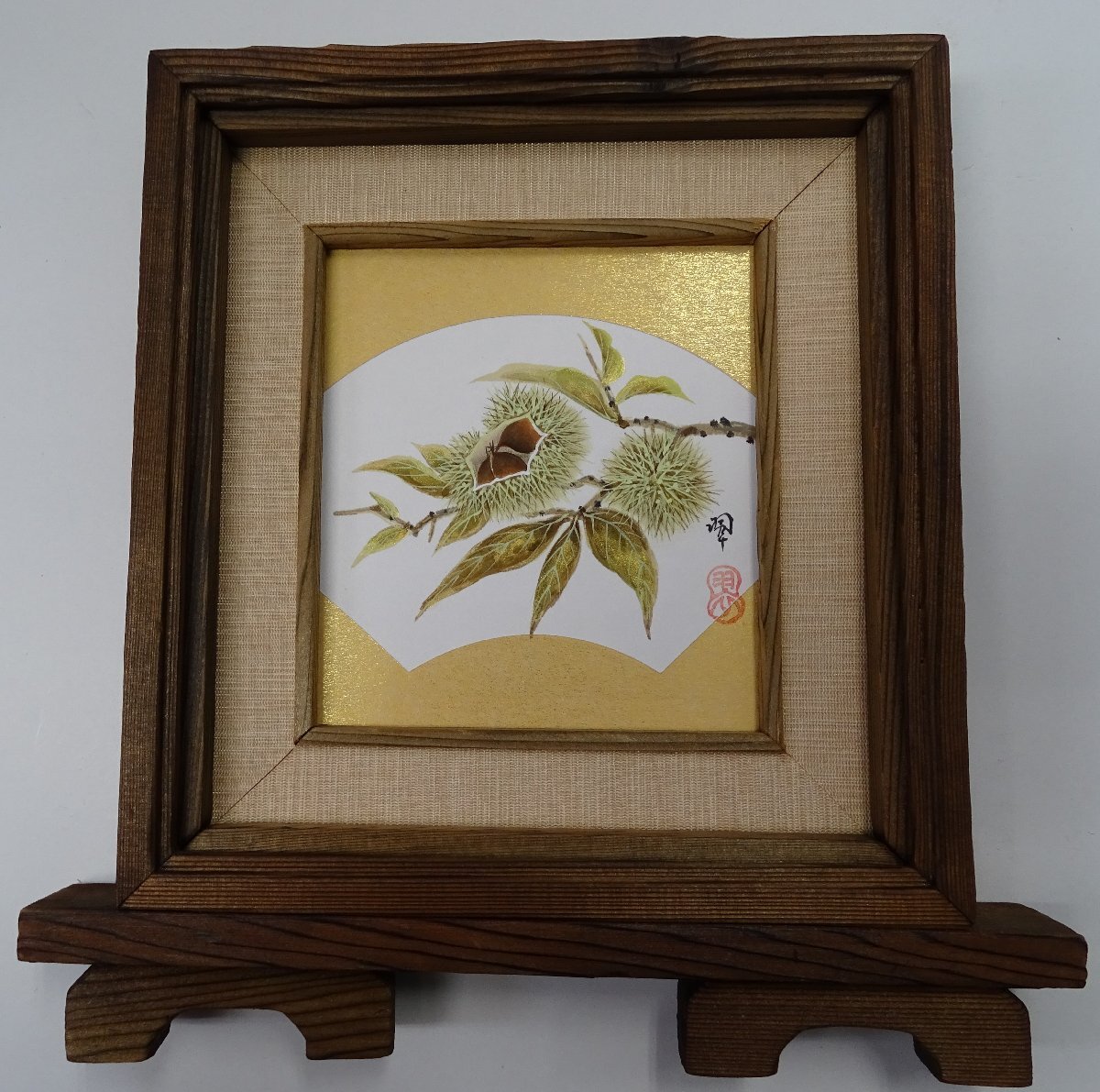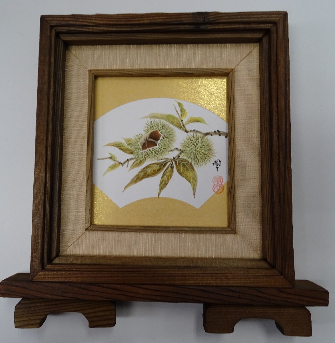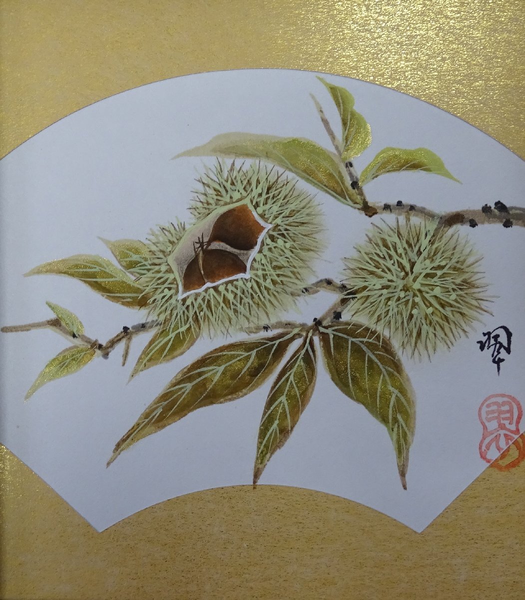 ・作者: 仲川 翠 ・画題: ・栗 ・技法: ミニ色紙絵(直筆)  NO-R6-3-13.8