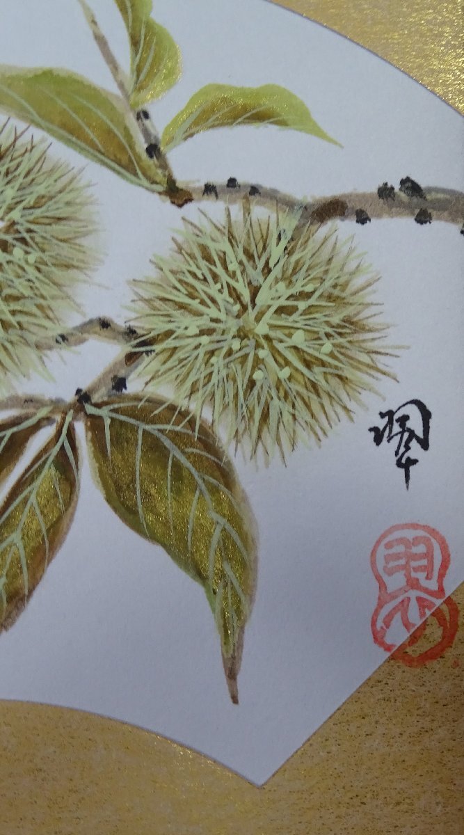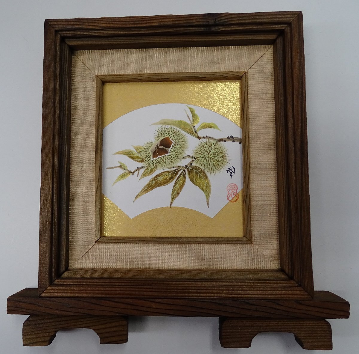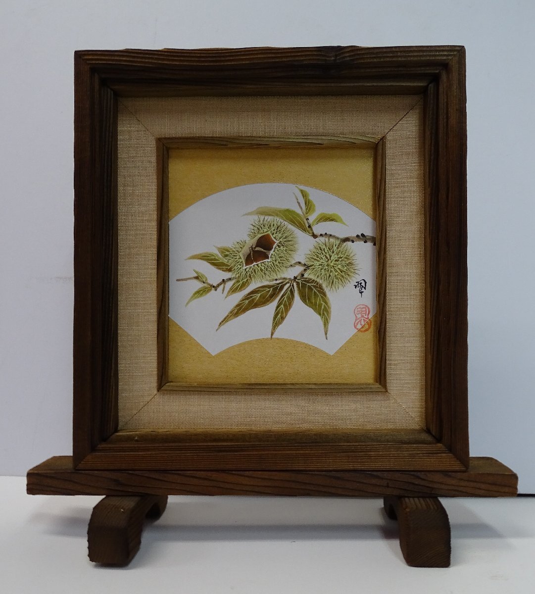 ・作者: 仲川 翠 ・画題: ・栗 ・技法: ミニ色紙絵(直筆)  NO-R6-3-13.8