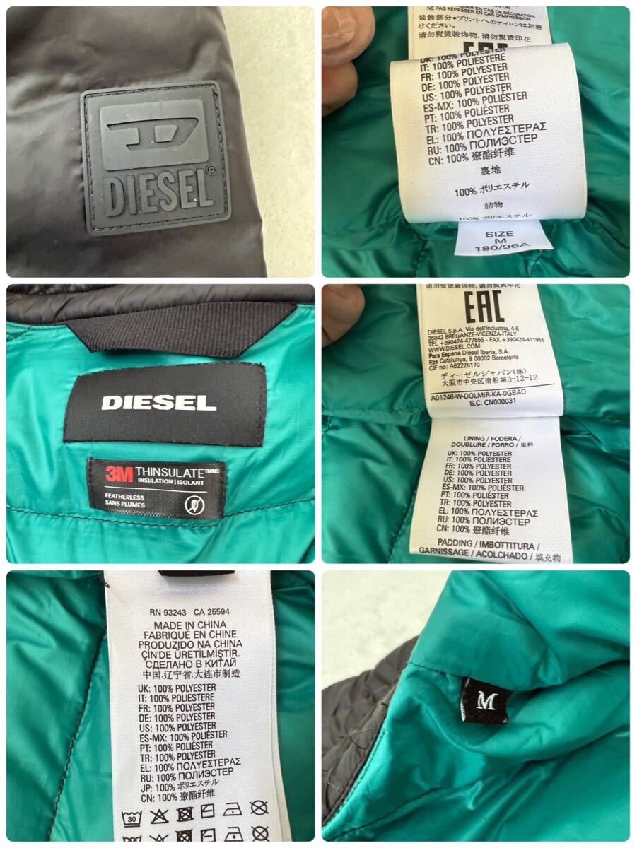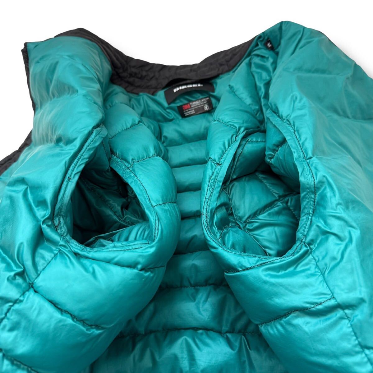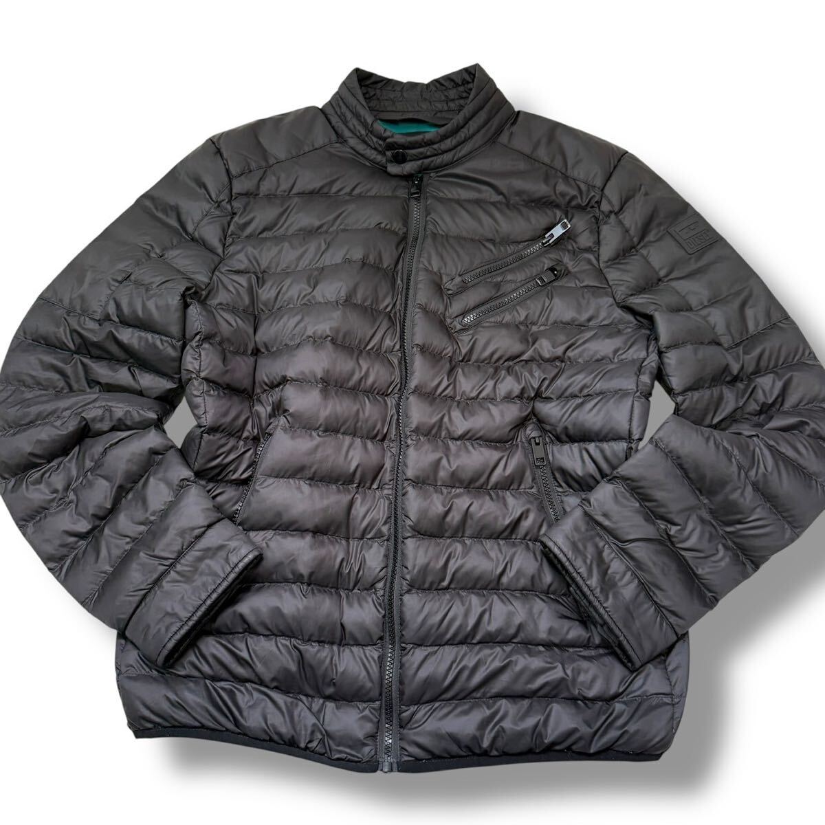 942未使用級 L相当★DIESEL ディーゼル ダウンジャケット 軽量 シングル ライダース 3M社製 高機能中綿 ブルゾン 黒 ブラック ロゴワッペン