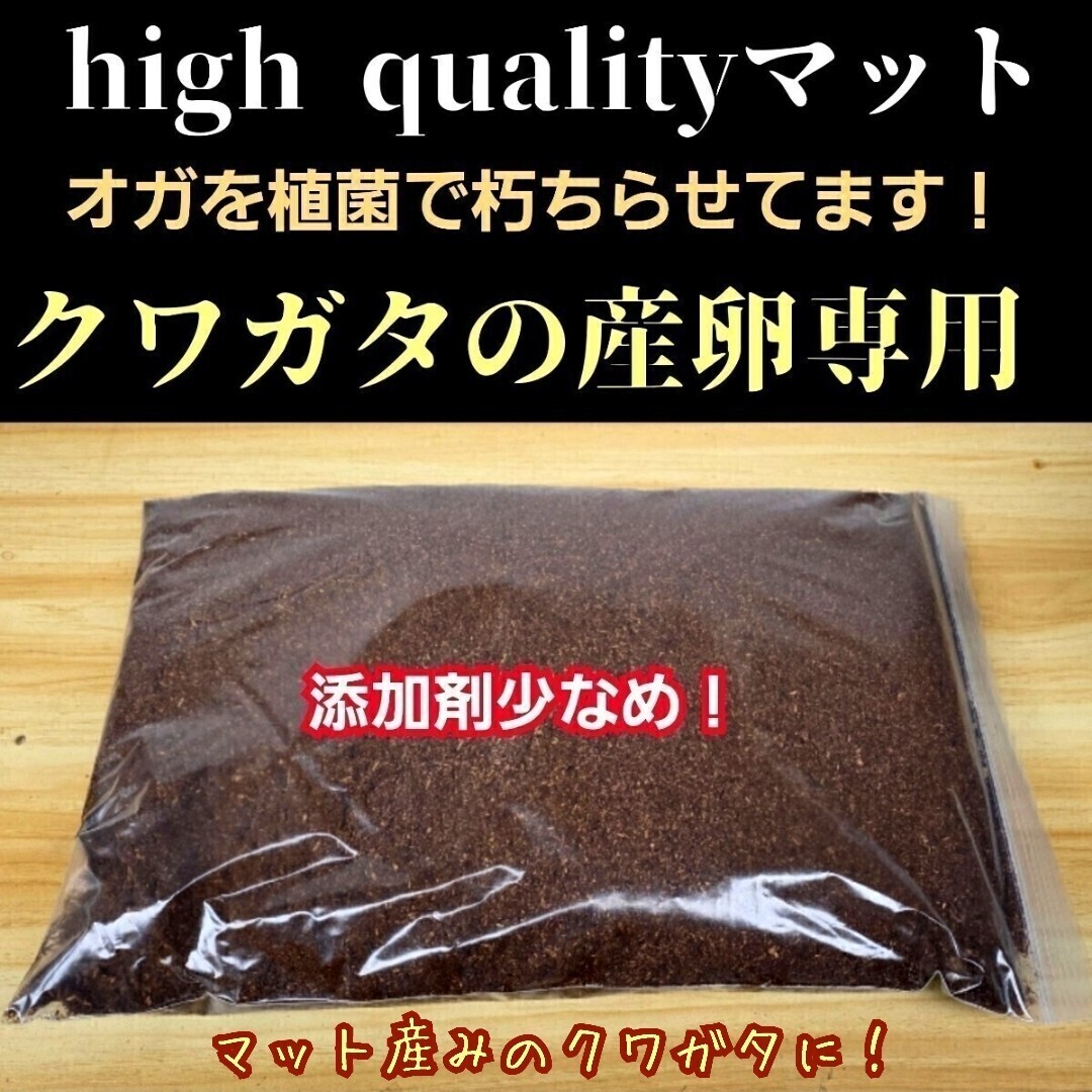 こだわりのカブトムシ、クワガタ用品を30年以上製造してきました。 たくさんのリピーター様には大変感謝申し上げます。 また、たくさんの効果報告を頂きありがとうございます。 high quality完熟3次発酵クワガタ産卵専用マットの出品になります(写真を3枚添付してありますのでご覧下さいませ) 数量:30リットル 10リットル×3袋セット 保存にも便利なチャック付き袋 追加は何リットルでもご対応致します。 ![]() クワガタが最も好む厳選したクヌギのオガコを100%使用して室内でじっくり特殊発酵させた産卵専用完熟マットです。 添加剤をかなり減らして発酵させてる為、産卵に特化した商品です。 天然に近い環境を再現する為にオガは植菌で朽ちらせたものを使用してますのでクワガタの産卵意欲が高まり多産へと導きます。 ![]() 他社のマットのように廃菌床は一切使っておりませんので雑虫の混入が100%ありません。 一般的に販売されてる安価な発酵マットはキノコ屋さんが廃棄した廃菌床を野外発酵させて作ってるため線虫やダニ、コバエが混入して飼育中に雑虫が湧くのです。 当社の発酵マットは新鮮なクヌギオガを管理された室内で長期間発酵させてますので雑虫混入が全くなく面倒な熱処理や冷凍処理が不要です。 ![]() 産卵数が断然アップしますのでリピート率がかなり高いマットになってます。 ミヤマクワガタやノコギリ、ヒラタ、アンタエウス、ニジイロ、ヒラタ、シカクワガタ、ホソアカの産卵に抜群です。 マット産みのクワガタ全般に使えます。 産卵木の埋め込みマットにも抜群です! 当然、クワガタ、カブトムシの幼虫の餌にもなります。 基本的にガス抜き加水不要ですぐに使えます。 雑虫の混入が100%ありませんので非常に安心して使用できます。 保存にも便利なチャック付き袋。 追加は何リットルでもご対応致します。 1箱に100リットルまで同梱できます。 ご希望のリットル数などございましたら質問欄からお気軽にお尋ね下さいませ。 他にも栄養添加剤を加え3次発酵させたプレミアム発酵マットもあります。 プレミアム発酵マットは、幼虫飼育で大型を求める方やヘラクレスなど上級のカブトムシ、ミヤマクワガタ、外産ヒラタ、ノコギリ、ニジイロなどの幼虫飼育に抜群の効果を発揮します。 プレミアム発酵マットがご希望の方は私のその他の出品をご覧下さいませ。 他にもプレミアム発酵マット、オオクワガタ専用カロリーマット、カブトムシ用の発酵マット、成虫管理に最適な針葉樹マットや、成虫飼育やディスプレイに使える、とまり木、ハイグレードプロゼリー、ヒマラヤひらたけ菌糸瓶、カワラタ菌糸瓶、ヒマラヤひらたけ菌糸ブロック、黒アワビタケ菌糸瓶なども出品していますので私のその他の出品もご覧下さいませ。 私の出品者名をクリックすると商品一覧が見れます。 飼育に関するご質問・ご相談にも対応しております。ご購入後のサポートも安心してお任せください。 |