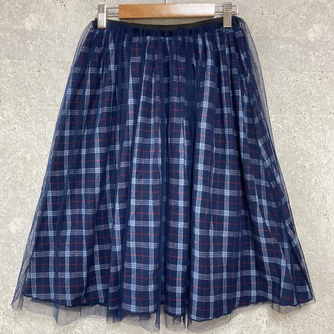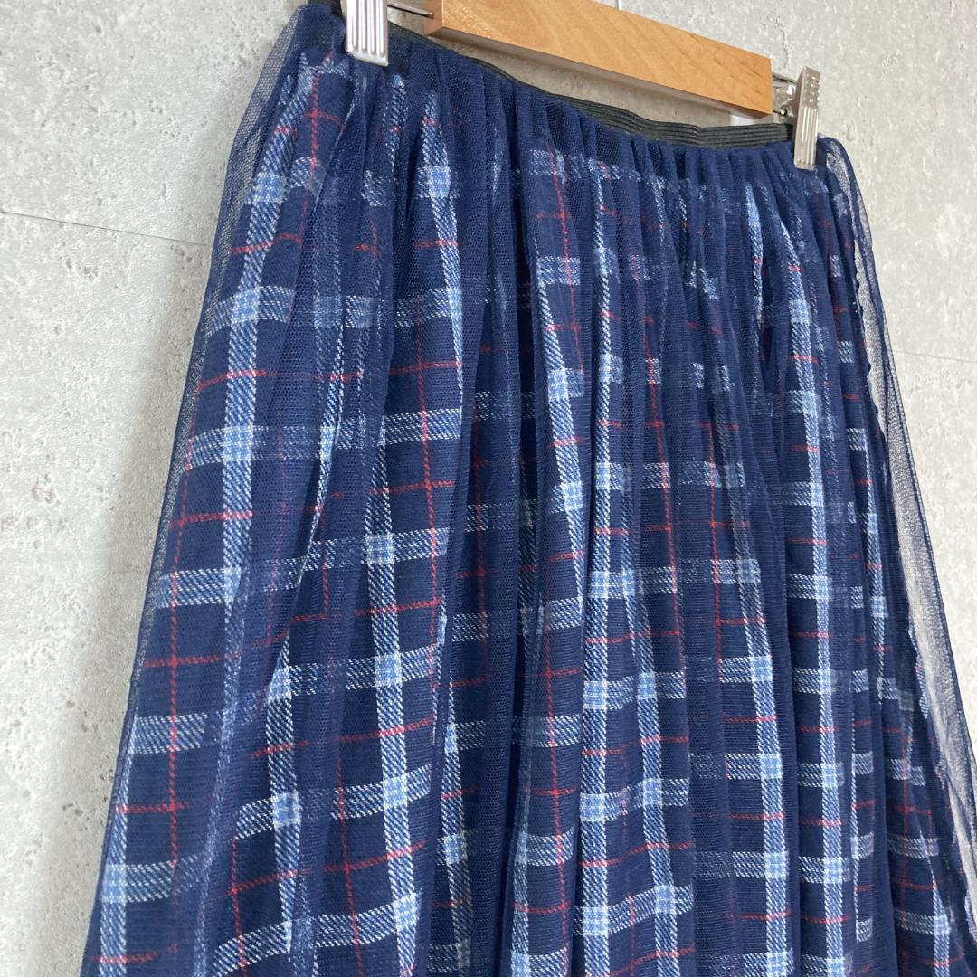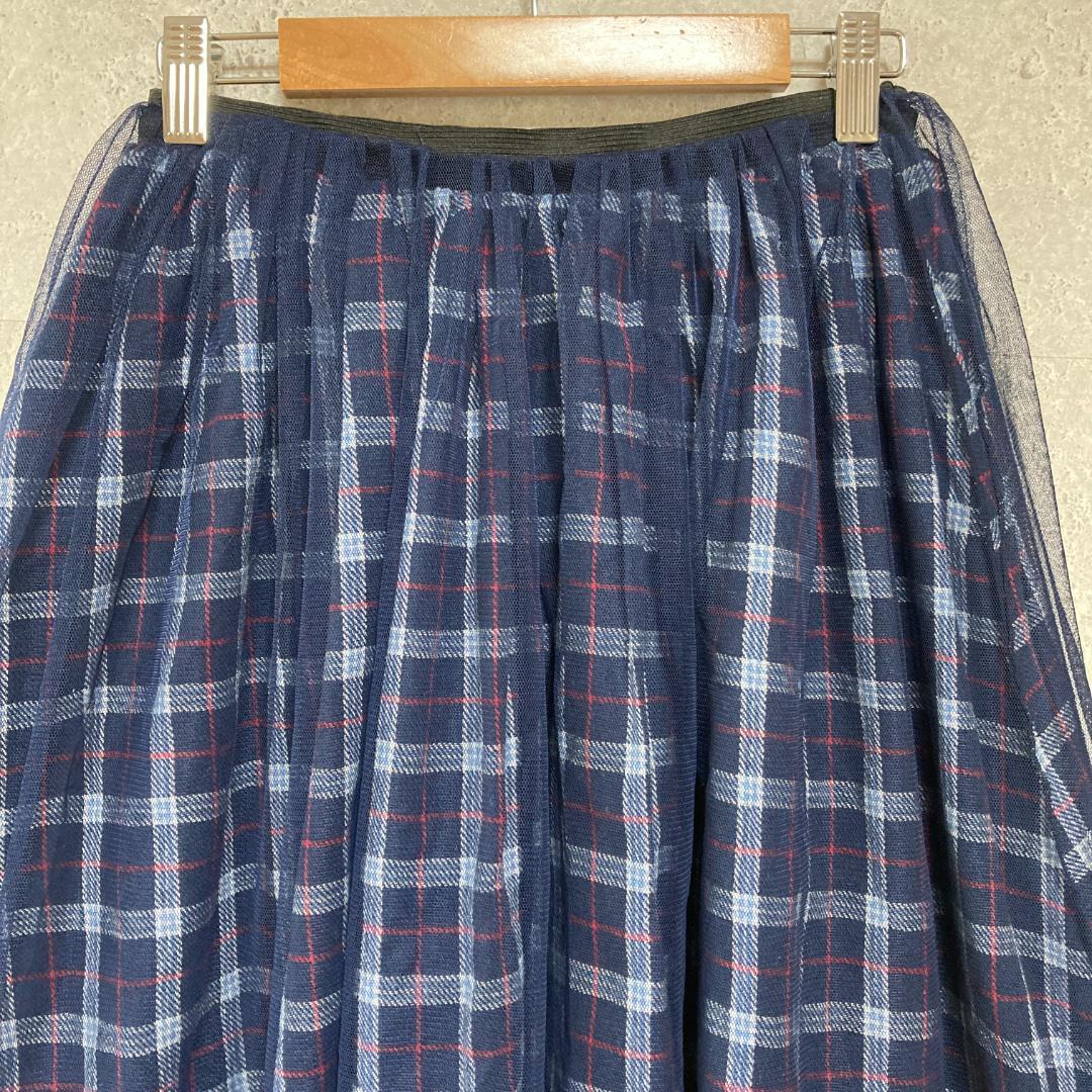 アズノウアズピンキー(ONE)チェックフレアスカート*チュール付*ミディ丈*ゴム