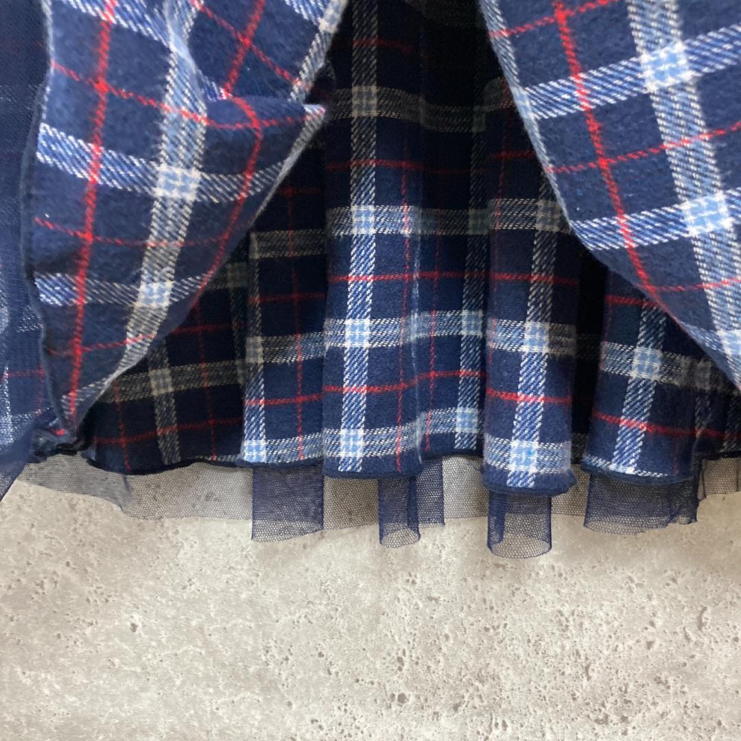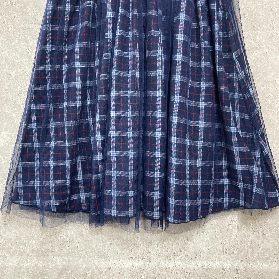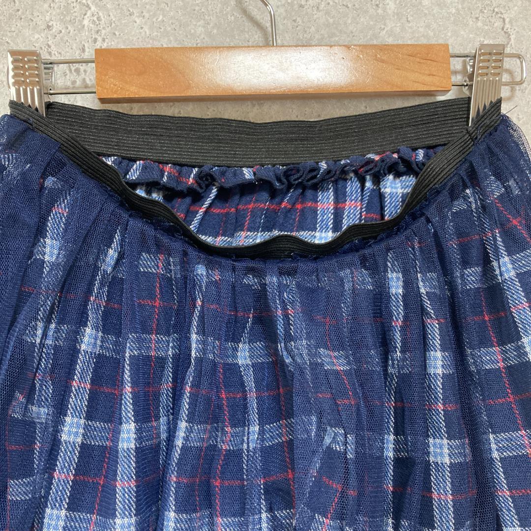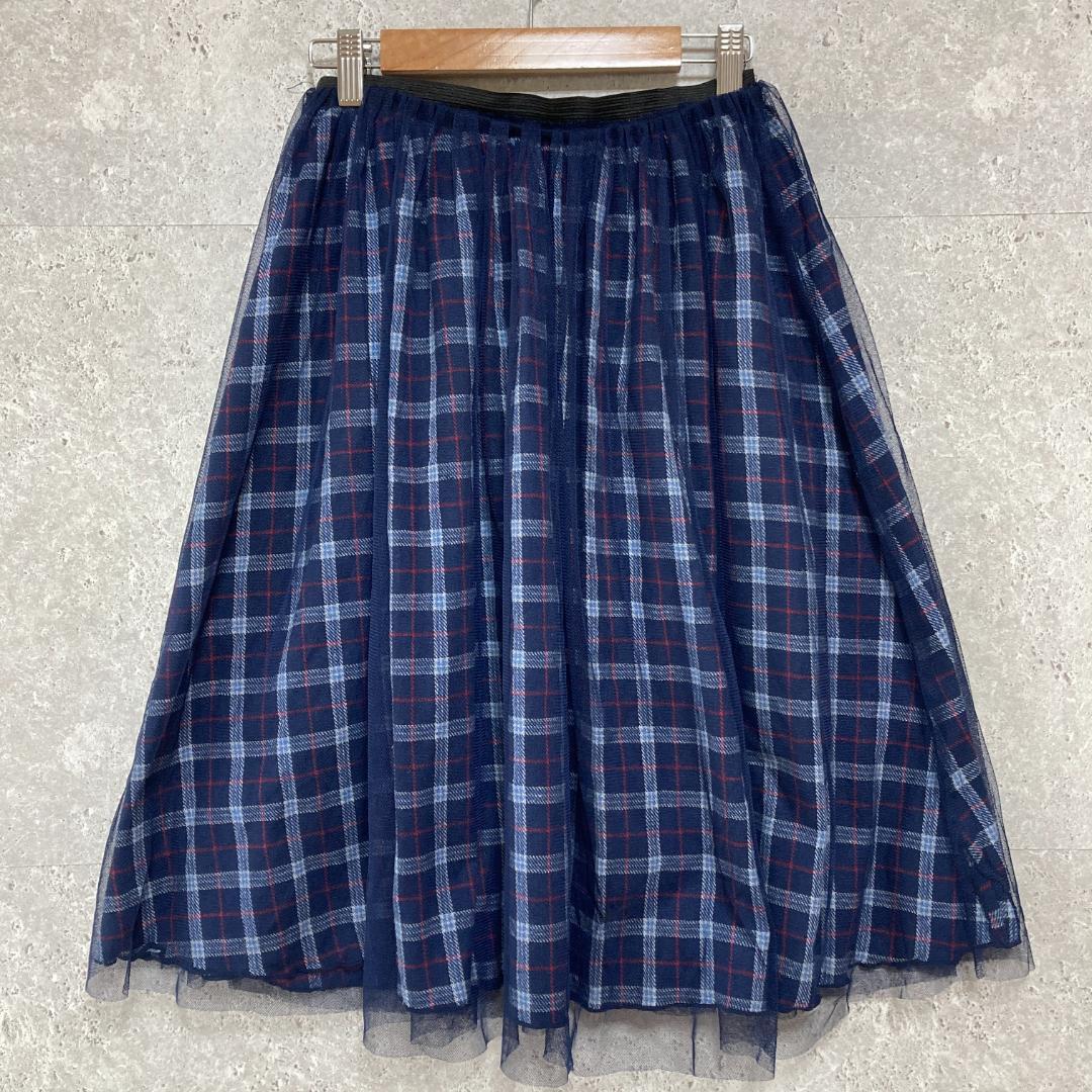 アズノウアズピンキー(ONE)チェックフレアスカート*チュール付*ミディ丈*ゴム