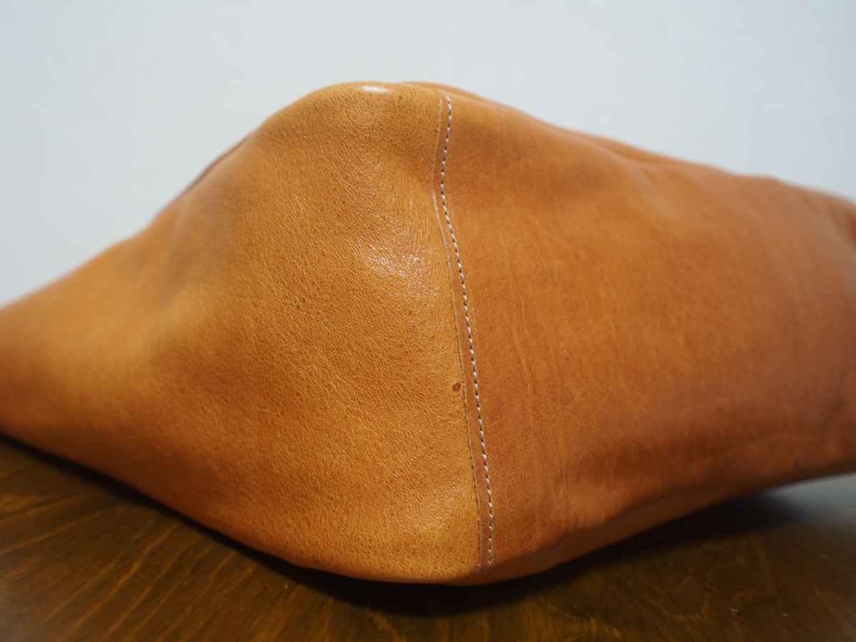天然タンニン鞣しのプルアップレザーです。物理的な作業によってシワを強調させている特徴な革です。使い込んでいくうちにツヤ・味がでてきます。私たちが知っているかぎりこの革を使用しているところは、数少ないです。