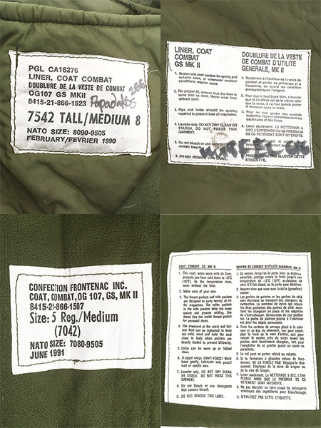 1990年の7542 TALL/MEDIUM 8の中綿入りキルティングライナー付。