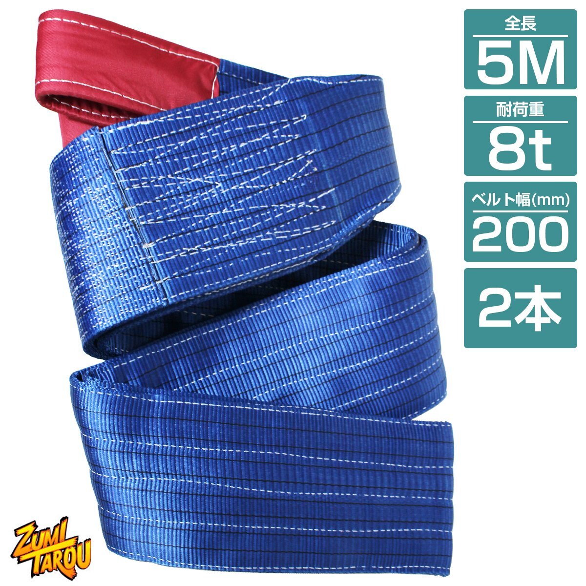 [2本 セット/耐荷8t/長さ 5m] スリング ベルト 吊上げ ナイロン クレーン ロープ 荷吊り 玉掛け 牽引 運搬 8000kg 8トン 幅200mm