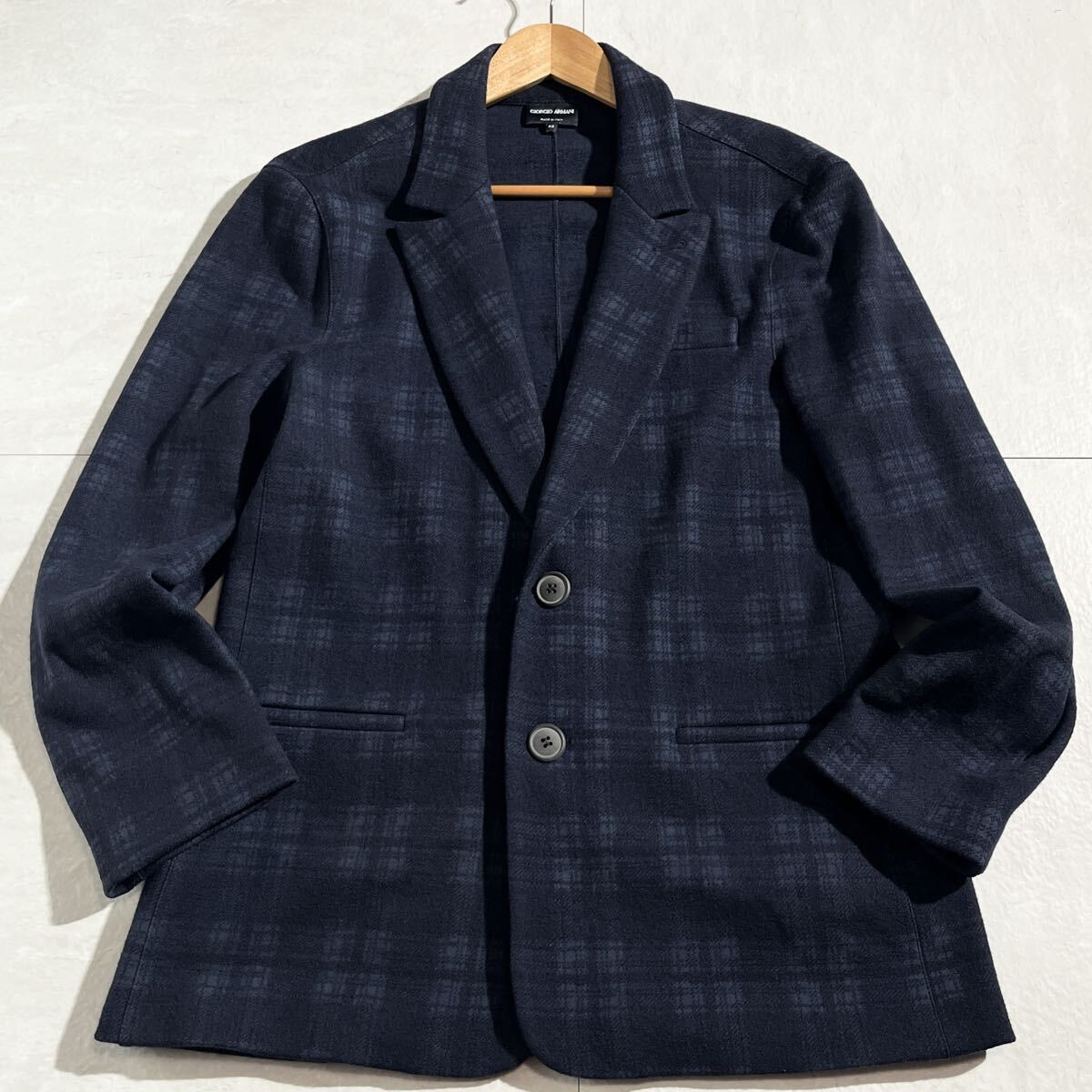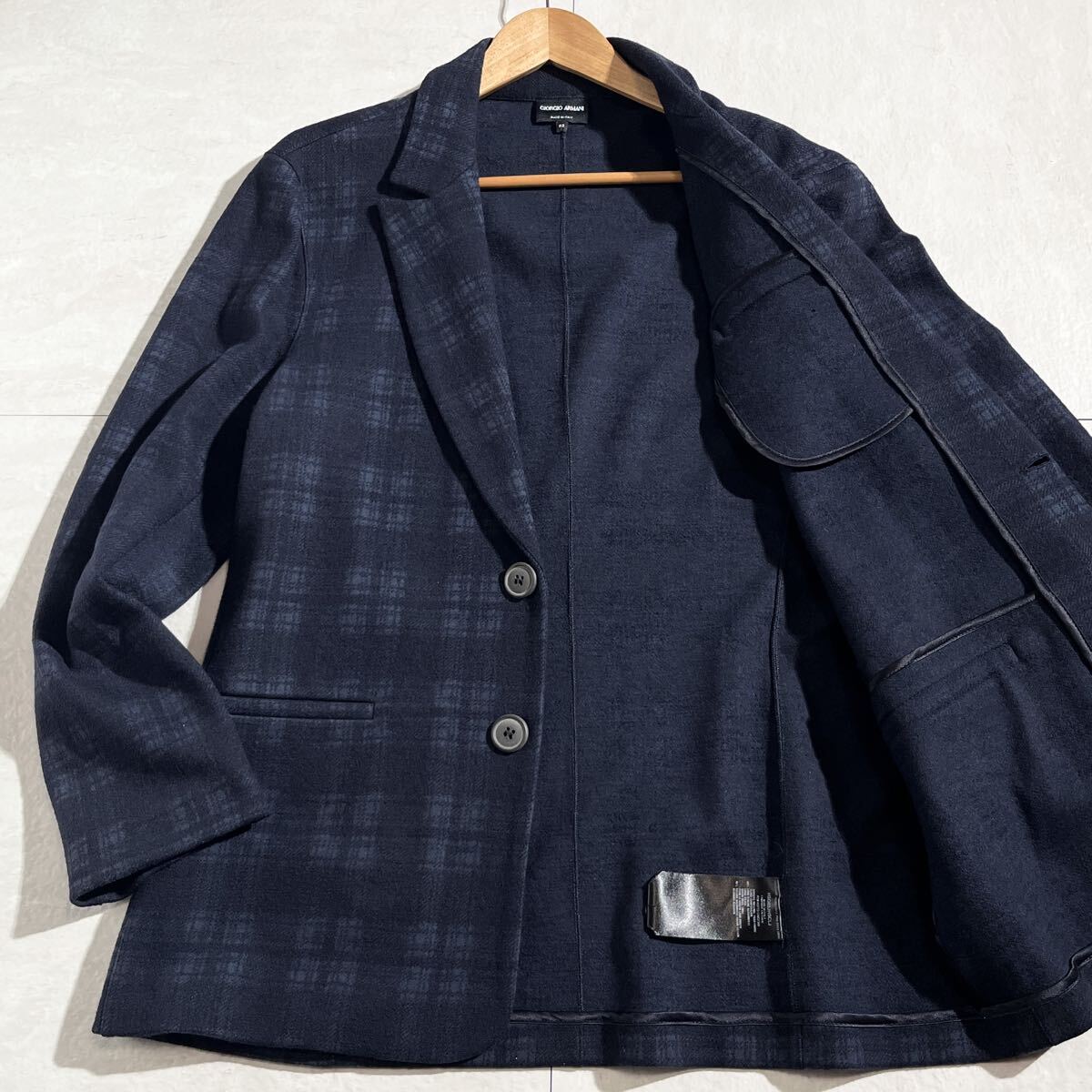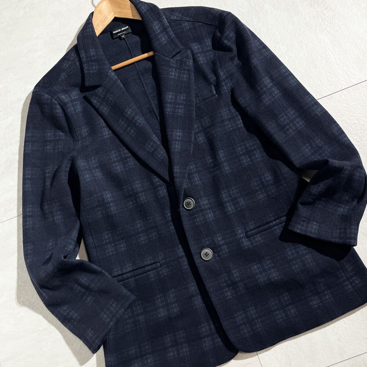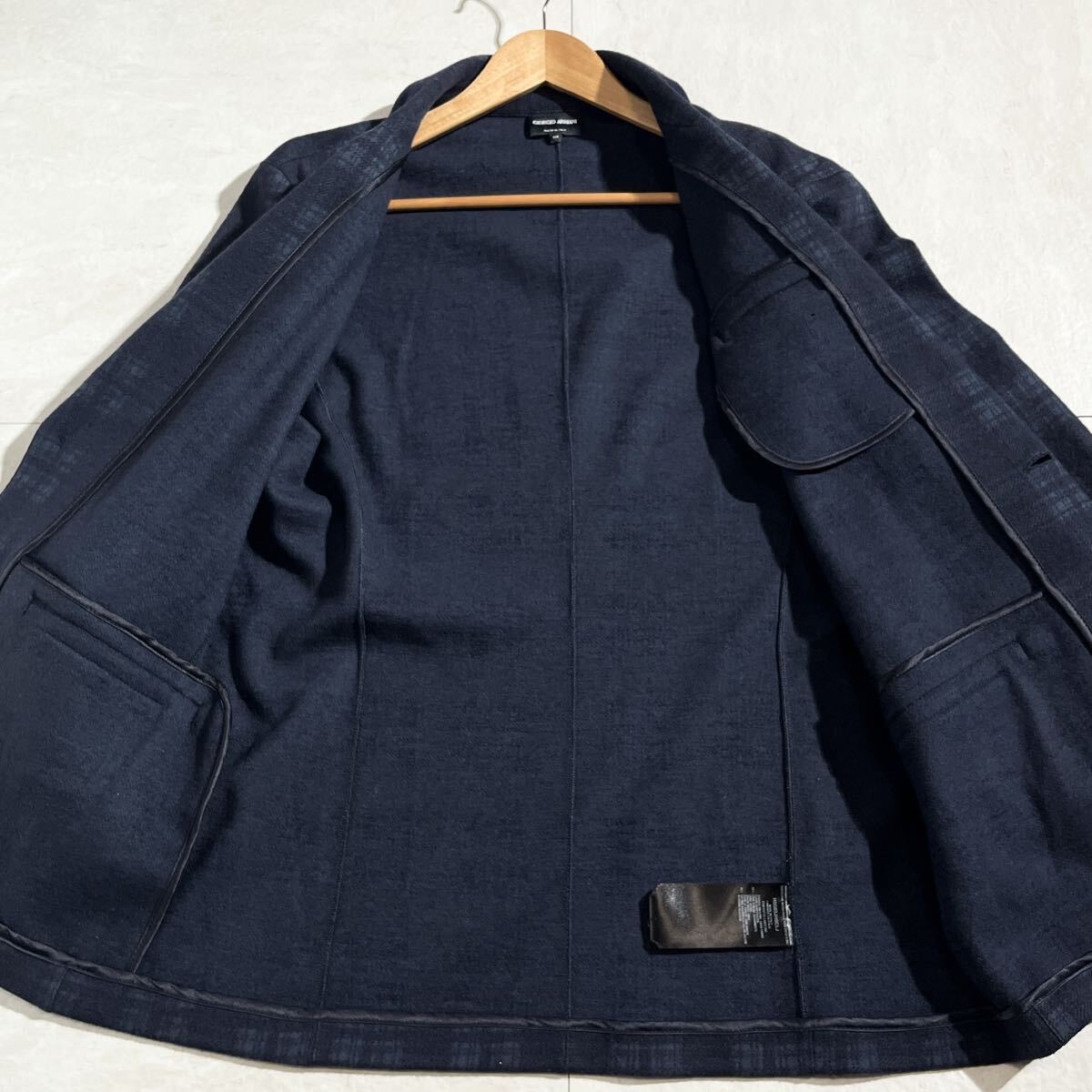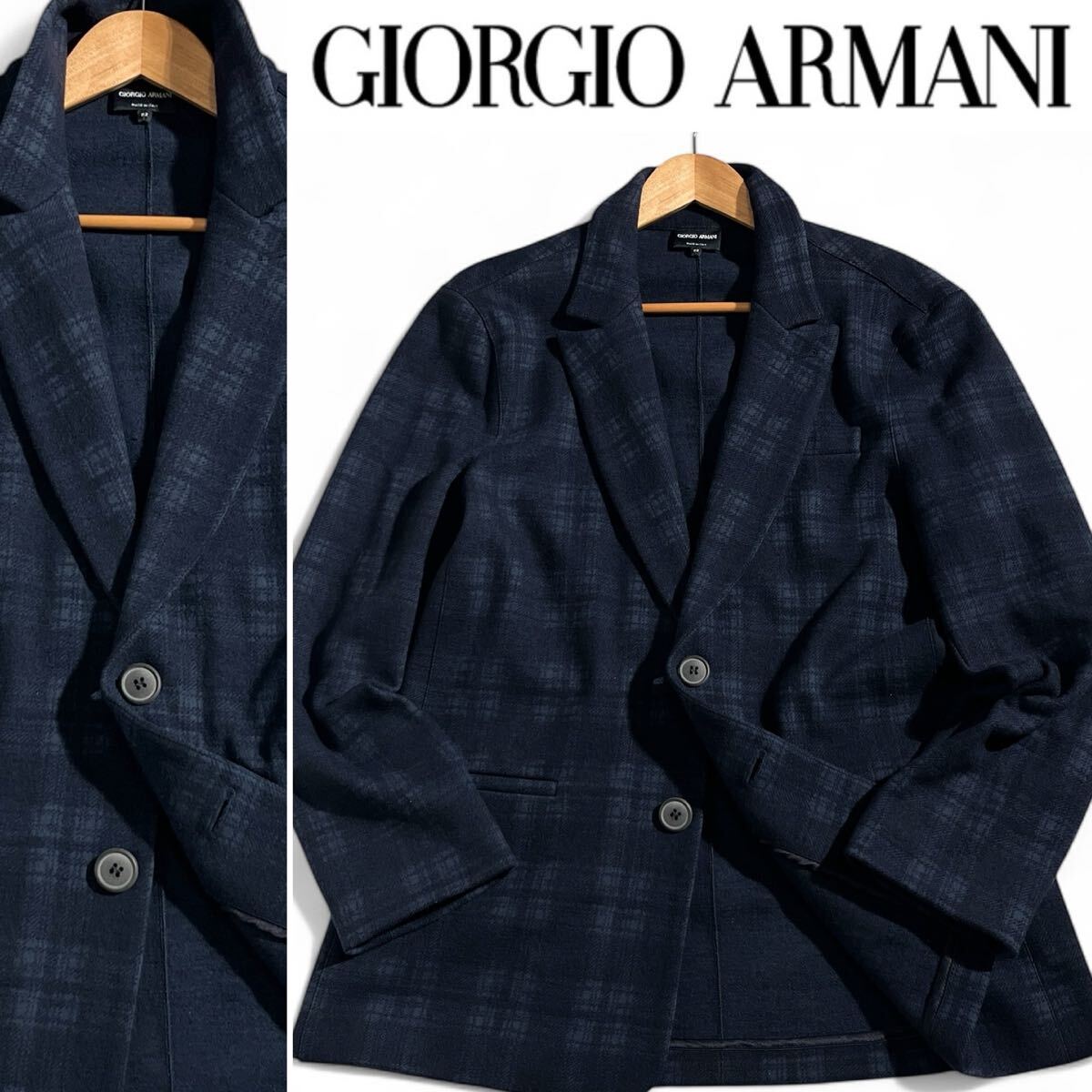 極美品/XL ●GIORGIO ARMANI【最高級近年黒タグ】ジョルジオアルマーニ メンズ テーラードジャケット チェック ダークネイビー 52
