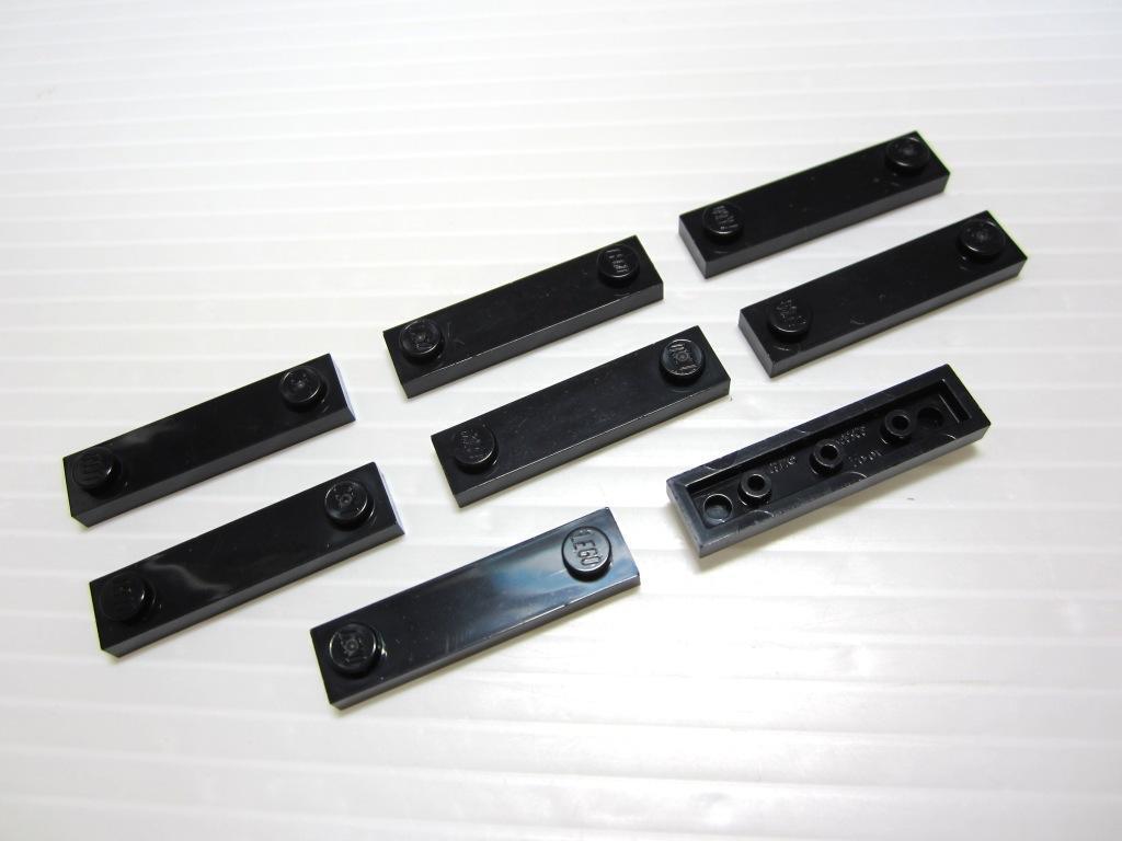 本品は黒色の1×4プレート8点セット(両端2ポッチ)です。