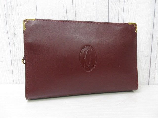 極美品 Cartier カルティエ マストライン クラッチバッグ バッグ レザー ボルドー 90400 | ||