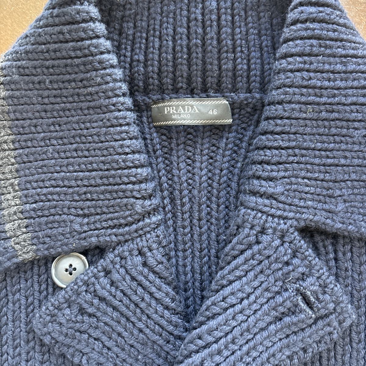 プラダ直営購入後1回しか着用していない新品同様です。商品全般毎年値上がりを続けている中、流行関係なく着れる定番、表記46、ウール100、超美品ですがあくまで中古品です。NCNR、ゆうパック着払いのみ対応となります