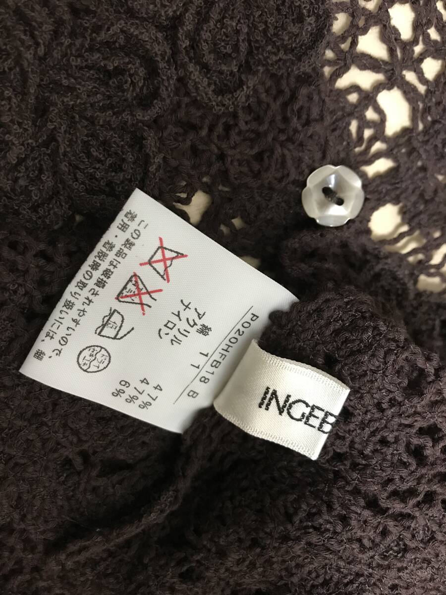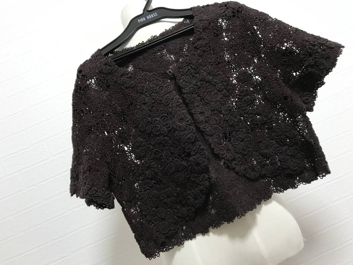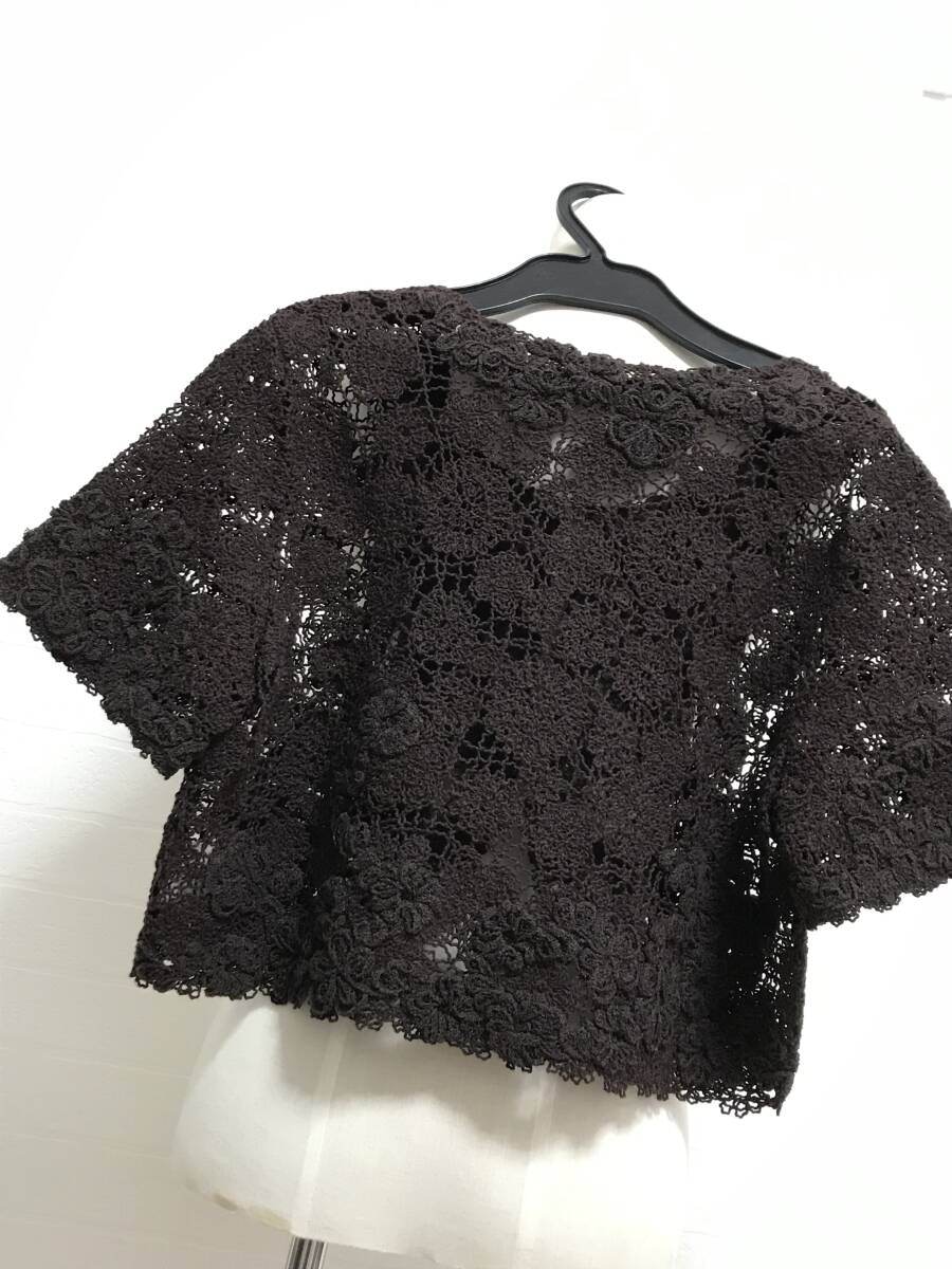 ★インゲボルグ 花モチーフ レース 花ボタン カーディガン ボレロ 日本製 茶