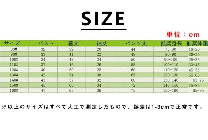 ※以上のサイズはすベて人工で測定したもので、誤差は1-3cmで正常です。