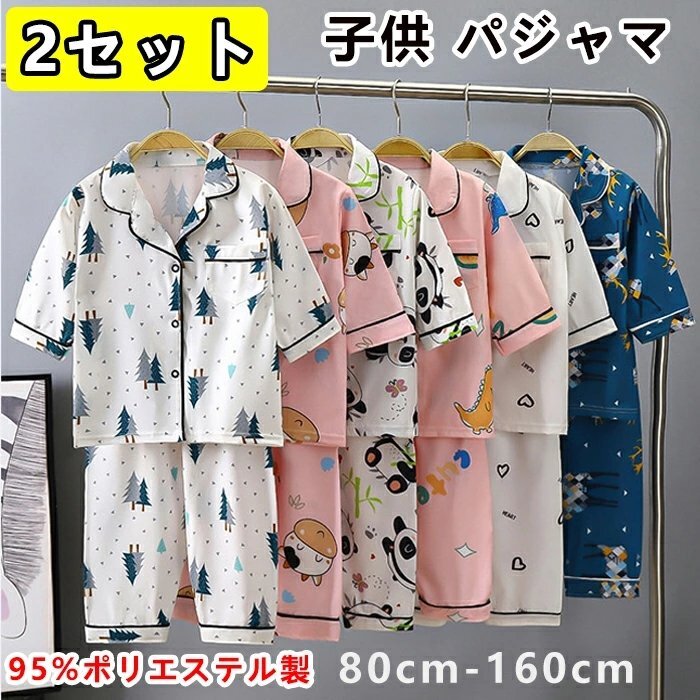 【2セット】子供 パジャマ キッズ ルームウェア 半袖 女の子 男の子 ベビー 子供 上下セット ポリエステル95% ☆8色/80~160選択/1点