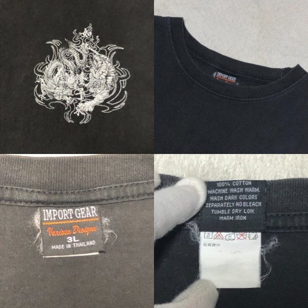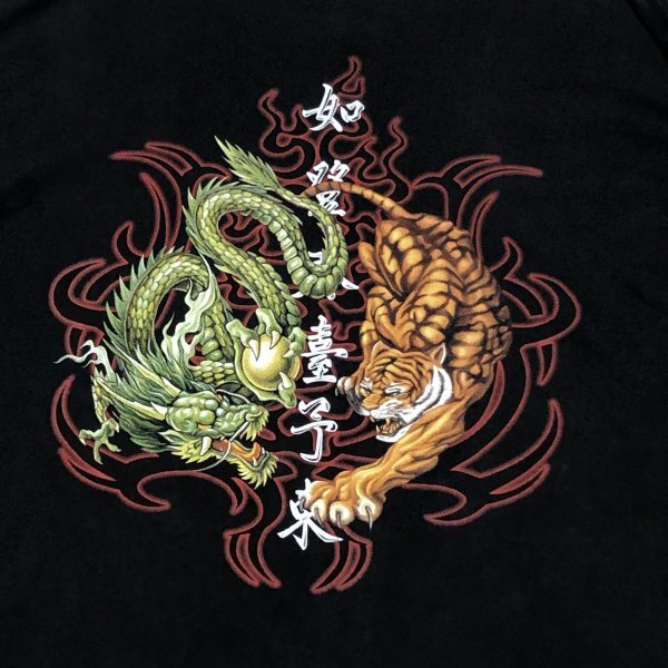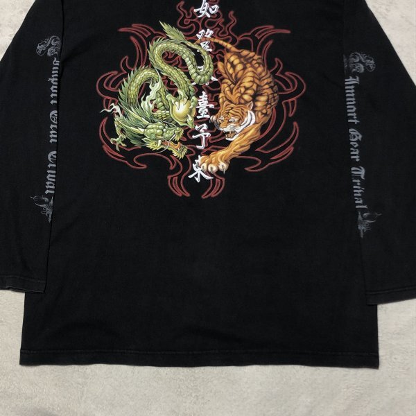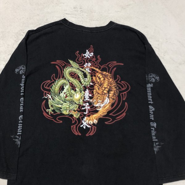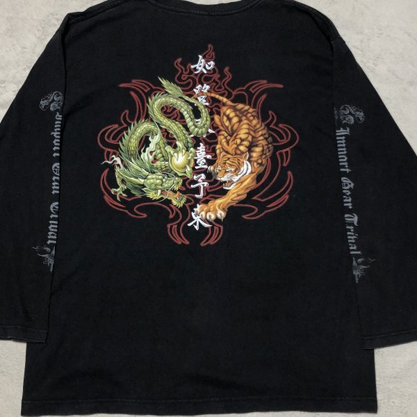 IMPORT GEAR インポートギア 龍虎プリント 長袖Tシャツ ロンT ブラック 人気の大きいサイズ 3Lサイズ