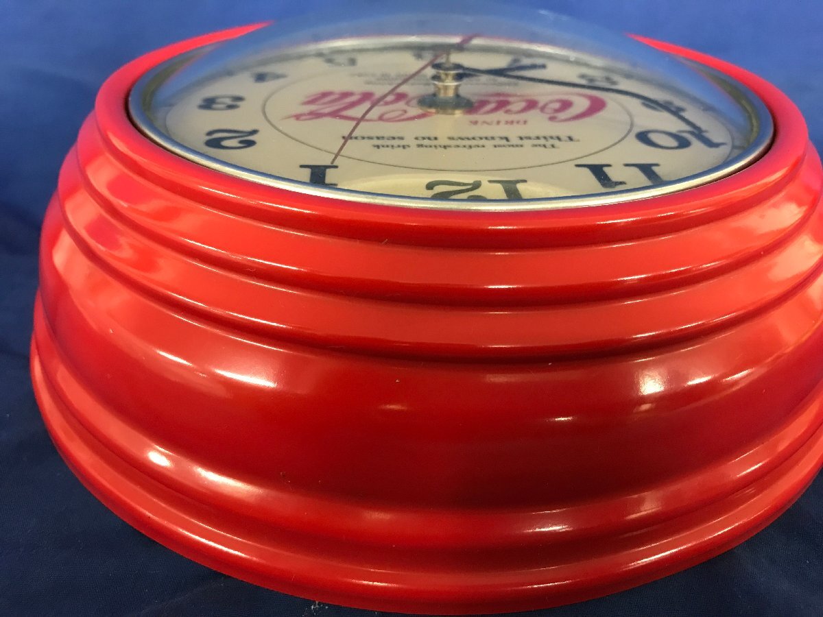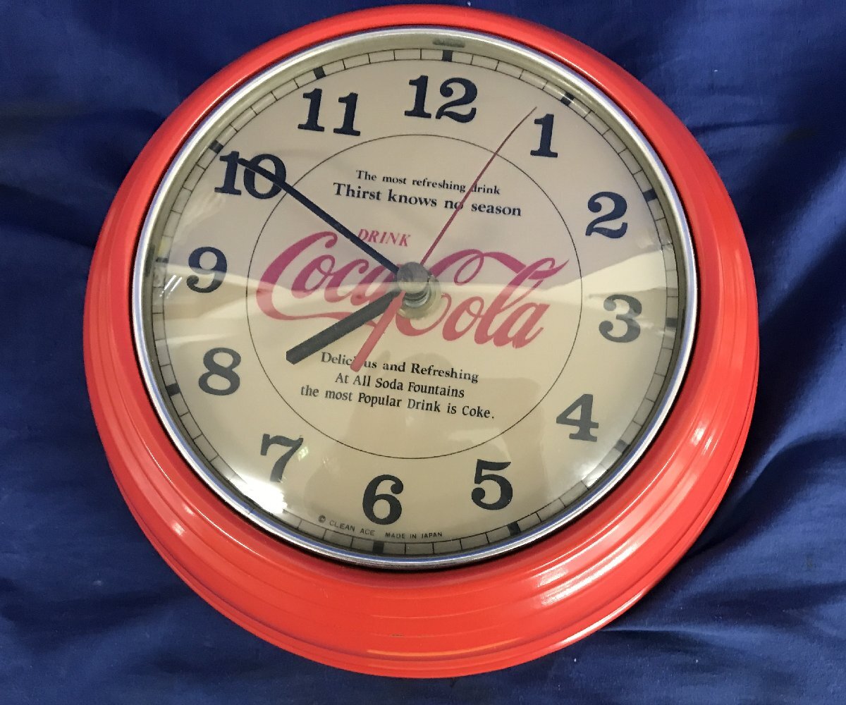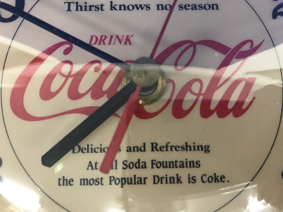 ★50―108★壁掛け時計 コカ・コーラ 掛け時計 直径約21cm 動作品/ビンテージ レトロ レア 希少 ノベルティ クォーツ[80]